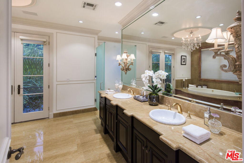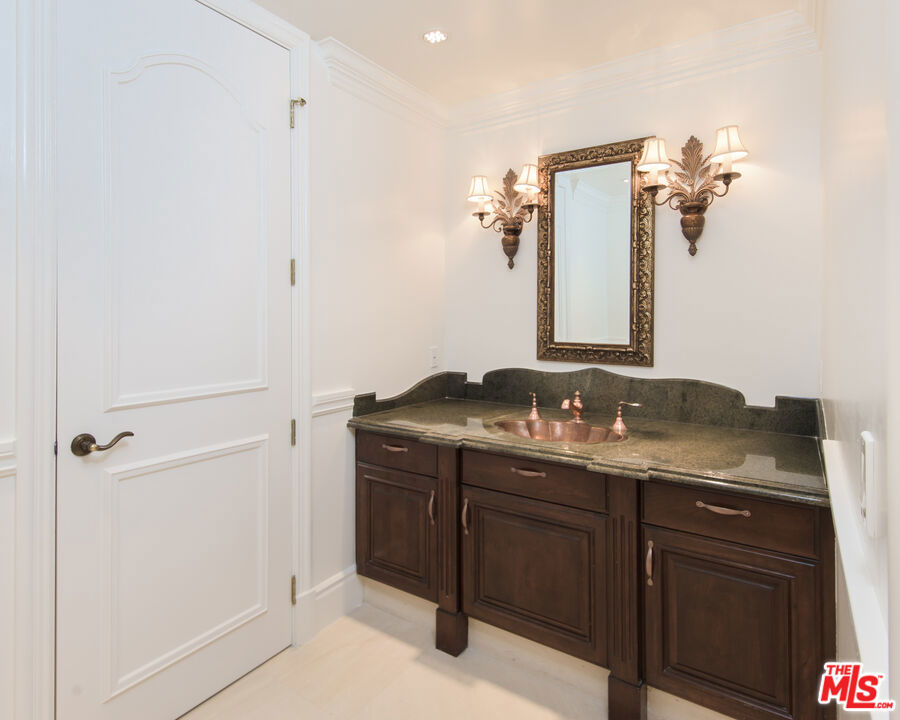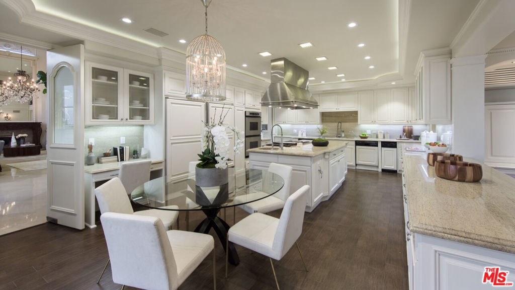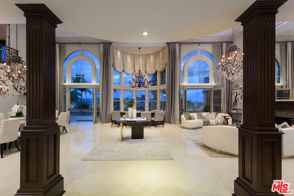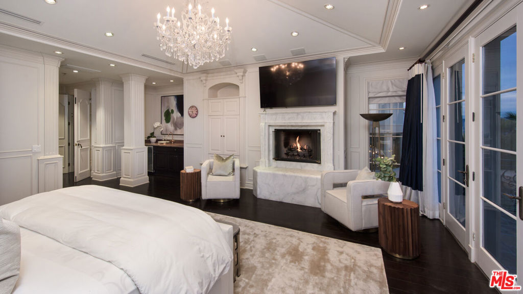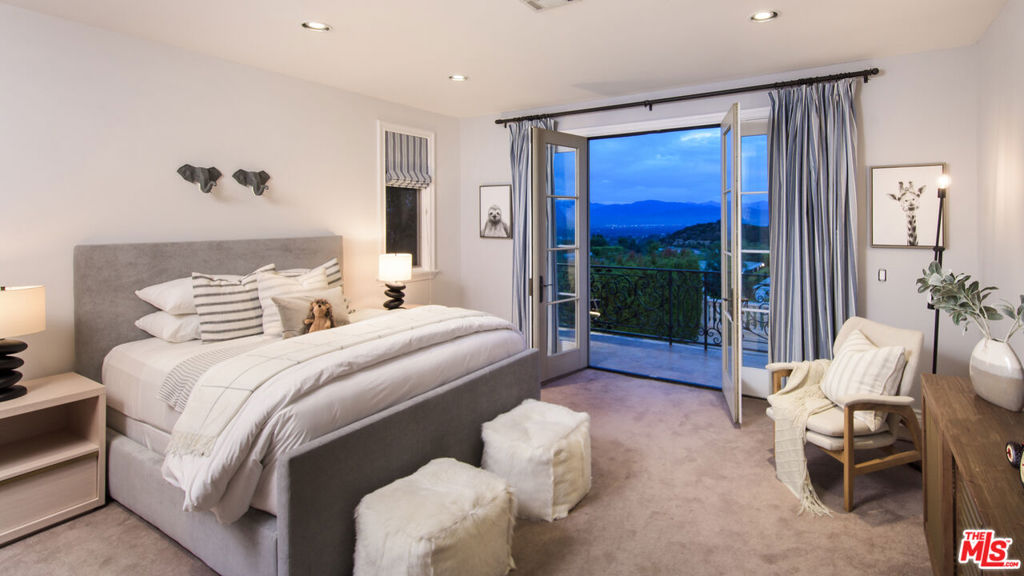 Situated in the coveted Bel Air Skycrest neighborhood, this elegantly modern yet traditional-style home was envisioned for grand-scale living and entertaining. Capturing panoramic city, canyon, and mountain views, the home seamlessly blends indoor and outdoor living, offering the ideal space to host family and friends. Arrive at the home, where the ivy-clad facade and lush landscaping frame the towering, arched front door. Enter into the magnificent formal living and dining room with soaring 30-foot ceilings, an entertainer’s bar, regal fireplace, and floor-to-ceiling arched windows and glass doors framing views of the property and mountains beyond. Off the entertaining space is the expansive gourmet chef’s kitchen with spacious island, premier Viking appliances and an adjacent family room with fireplace. Glass doors connect the living and entertaining spaces to the extraordinary backyard retreat, where tall palms and mature trees hold court over the swimming pool, heated spa, built-in BBQ kitchen and lawn. Expansive terraces and a covered loggia offer ample space for lounging, dining and entertaining amidst the far-reaching views. Completing the first floor is a plush media room with a wet bar and an office that may serve as an additional bedroom or staff quarters. The stairs ascend to the sweeping terraced hallway, which overlooks the living room below. At one end are three bedrooms, each with ensuite baths and walk-in closets, and on the other, the stunning primary suite boasting a wet bar with fridge, soaring ceilings, marble fireplace, a soaking tub and private balcony with fantastic views. Featuring a two-car garage and plenty of additional parking, the home offers a quiet, tranquil setting in a central location close to the Westside and L.A.’s best private schools, including Curtis, Buckley, Mirman and Milken. With convenient nearby access to the 405, the home is minutes from Brentwood, Beverly Hills, Santa Monica and the Valley.