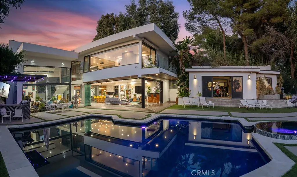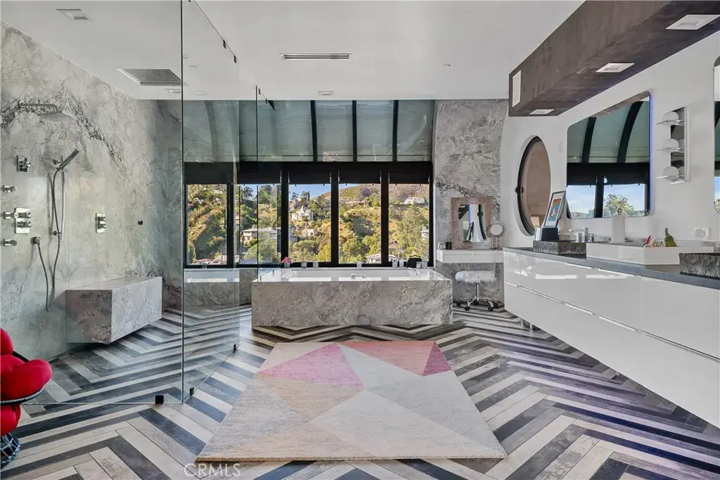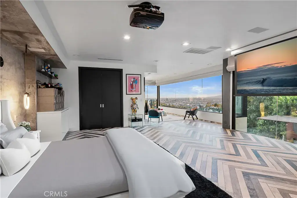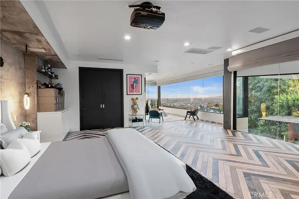 Step inside, and you’ll be immediately captivated by the fantastic energy that permeates every corner of this house. Its custom-designed modern patio and expansive glass front facade create an immersive experience, making you feel as though you’re ensconced in a luxurious fishbowl, all while marveling at some of the most stunning vistas the Hollywood Hills have to offer.