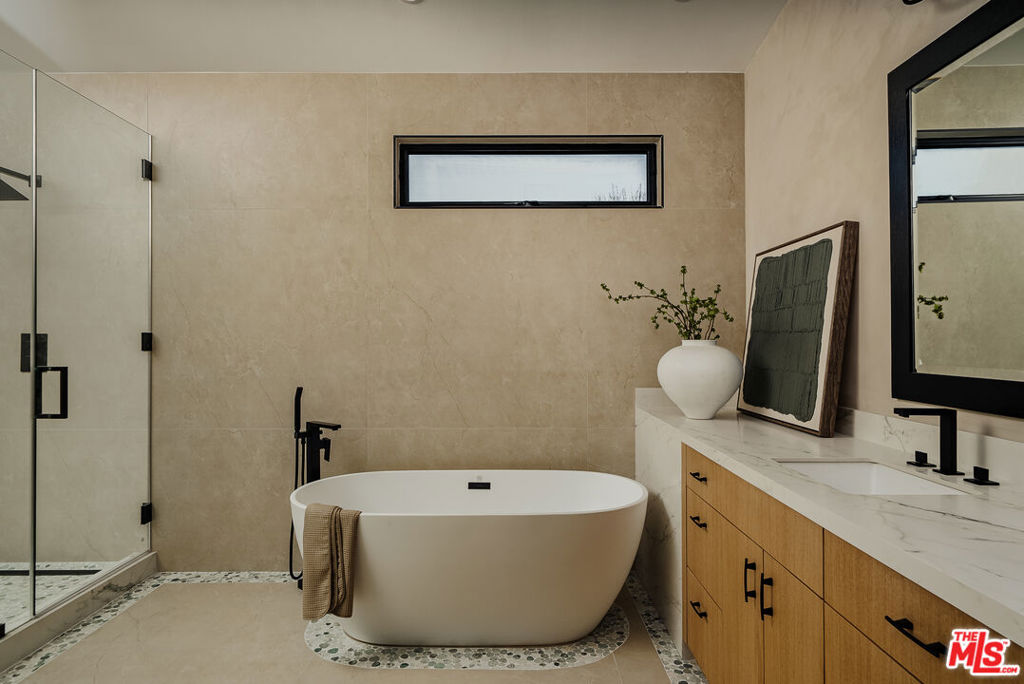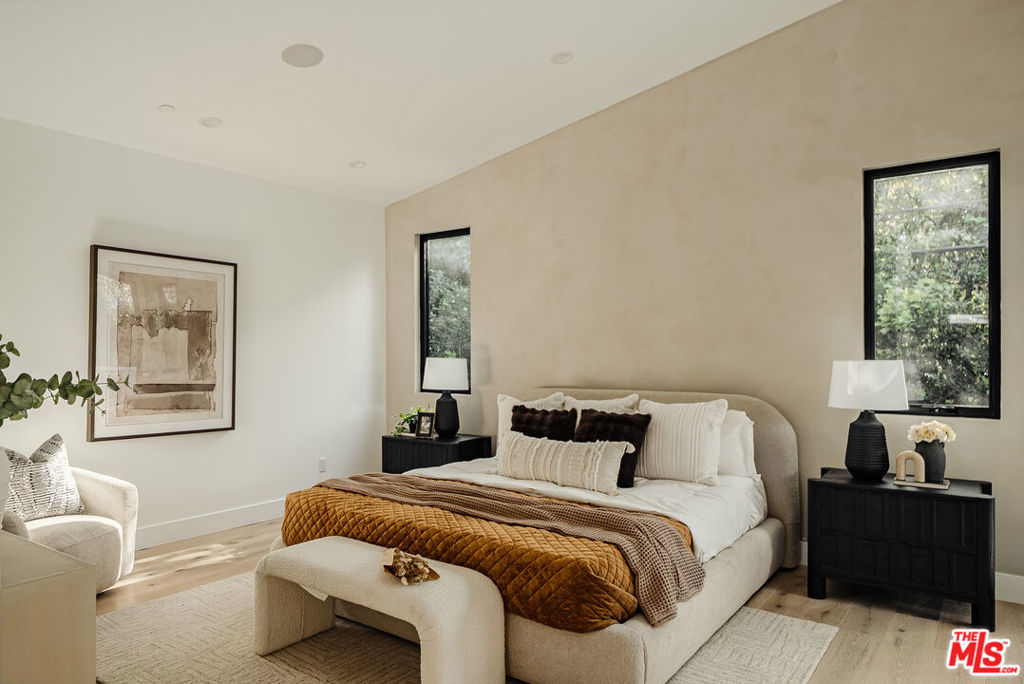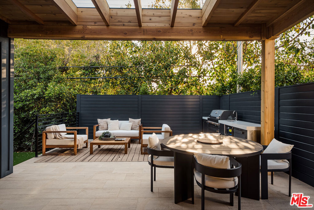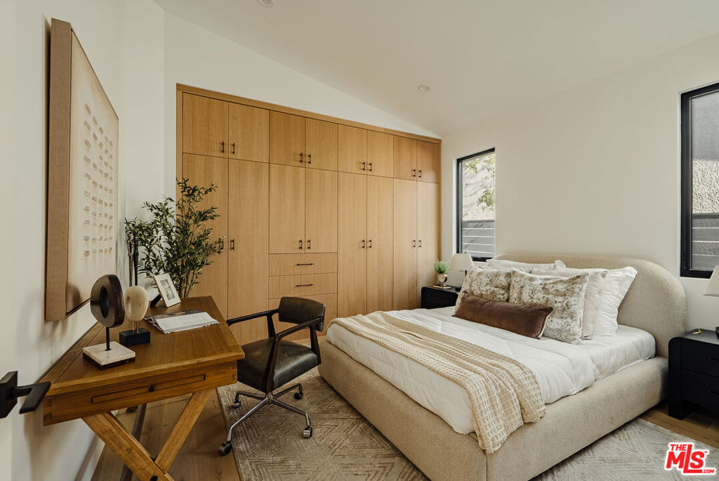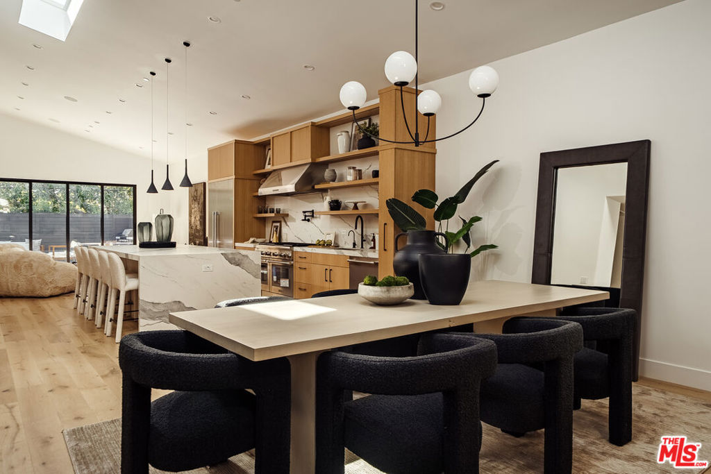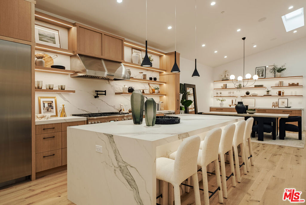 A Newly Completed Architectural Statement in Westside Village! Completed in 2026 with the finest of finishes, this stunning single-story architectural modern home offers an extraordinary level of craftsmanship, design, and comfort in one of the Westside’s most desirable neighborhoods. This sophisticated residence features 4 bedrooms, 3 bathrooms plus an office, thoughtfully designed to blend dramatic contemporary architecture with warm, organic materials. From the moment you enter, the home reveals a breathtaking sense of scale and natural light. Soaring ceilings, sun drenched skylights, and walls of glass create an airy, gallery-like environment, while wide-plank wood floors and custom natural wood millwork add warmth and refinement throughout. The dramatic great room centers around a sleek modern fireplace and custom illuminated display shelving, creating a striking focal point for both everyday living and entertaining. The chef’s kitchen is a true showpiece, designed for both beauty and performance. Custom cabinetry, dramatic stone countertops with full-height slab backsplash, professional-grade appliances, floating shelves with integrated lighting, and a sculptural oversized island with seating create a space that is as functional as it is visually stunning. The kitchen flows seamlessly into the dining and living areas, forming an expansive open-concept environment designed for modern living. The primary suite offers a private sanctuary, complete with a spacious custom walk-in closet and a spa-inspired bathroom featuring a freestanding soaking tub, oversized walk-in shower, dual vanities, and elegant stone finishes that evoke the ambiance of a luxury resort. Designed to embrace Southern California’s indoor-outdoor lifestyle, sliding glass doors open to a beautifully designed rear entertaining retreat featuring an approximately 324-square-foot covered patio pavilion with exposed wood beams, a built-in BBQ kitchen, integrated outdoor lighting, and a built-in sound system, creating the perfect setting for evening gatherings and weekend entertaining. Additional highlights include designer lighting, custom built-ins, curated finishes throughout, and a sleek attached garage. Ideally located on a quiet tree-lined street in highly sought-after Westside Village, the home is moments from neighborhood parks, Clover Elementary, acclaimed restaurants, and the best of the Westside. This is a rare opportunity to own a newly built architectural residence where design, comfort, and lifestyle converge effortlessly.