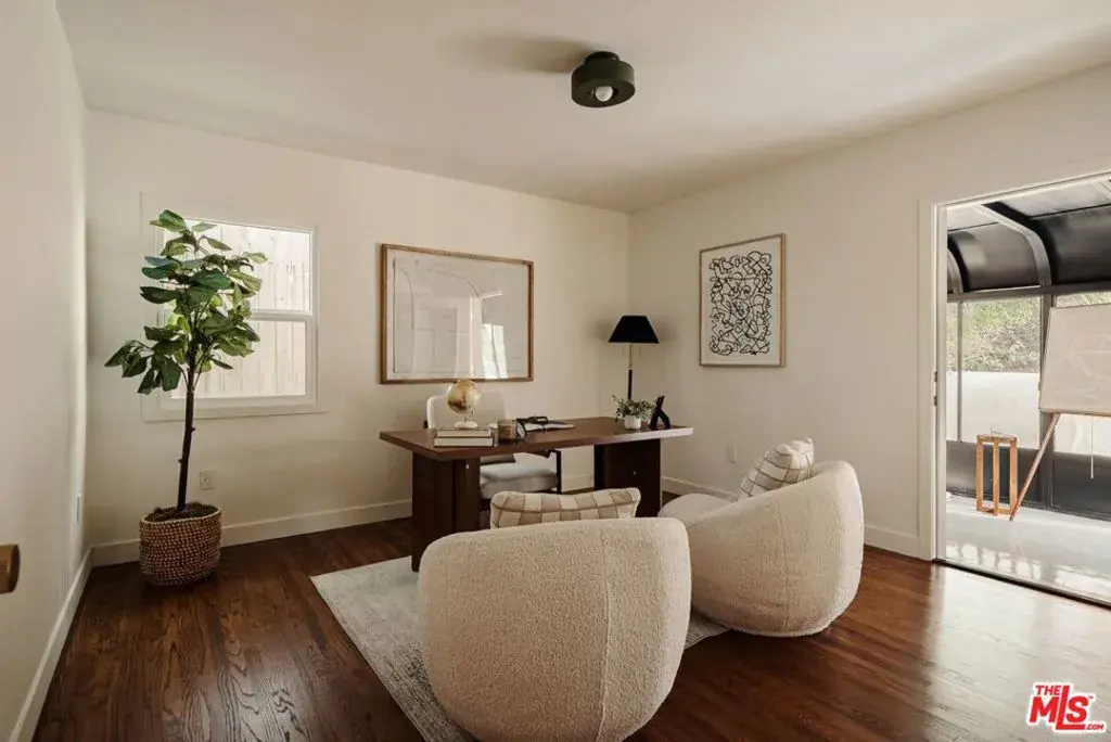 Nestled above a tree lined street in the heart of Beachwood Canyon, this reimagined retreat is a masterclass in “curated yet effortless” living, where historic soul meets bold, modern drama. The residence welcomes you through a vintage original door into a charming foyer grounded by rich, reclaimed hardwood flooring throughout. The heart of the home is a luminous chef’s kitchen; a design centerpiece featuring striking marble slabs, bespoke cabinetry, and top-of-the-line appliances seamlessly integrated for a sleek aesthetic. A walk-in pantry and a stylish breakfast banquette add a layer of everyday convenience to this high-design space. The living areas offer a sophisticated rhythm, shifting from sun-drenched to intimate and moody, where a formal dining area flows into the living room anchored by a statement fireplace framed in hand-crafted Zellige tile. Adding to the home’s versatility is a stunning covered sunroom an inspiring “flex” space flooded with natural light, perfect for a creative art studio, a quiet home office, or a vibrant playroom. The secluded primary suite serves as a personal sanctuary above the city, featuring a romantic fireplace, tailored custom closets, and a spa-inspired bathroom. Two additional generously sized bedrooms provide comfort and privacy with large custom closets, complemented by a full guest bath with separate shower, double vanity finished with designer tile and an elegant powder room, each with premium fixtures. Beyond the visible artistry, this turnkey masterpiece is meticulously future-proofed with high-end infrastructure, including a new 200-amp electrical panel, updated plumbing, a newer roof, and a comprehensive new HVAC system with an Ecobee smart thermostat. Modern intelligence is woven into the home’s DNA via Wi-Fi-controlled recessed lighting on dimmers, integrated USB-C charging outlets, and new black-framed windows that frame the canyon views. The lifestyle extends outdoors to a tiered, private backyard designed for the quintessential California dream, featuring a wood-burning fire pit and an elevated yard with lush, mature landscaping and wise beautiful trees. Offering the rare canyon luxury of ample parking and a finished two-car garage complete with a 50-amp EV outlet. Located just blocks from the iconic Beachwood Cafe and Market, this home represents a rare opportunity to own a piece of Hollywood history reimagined with every conceivable modern luxury.