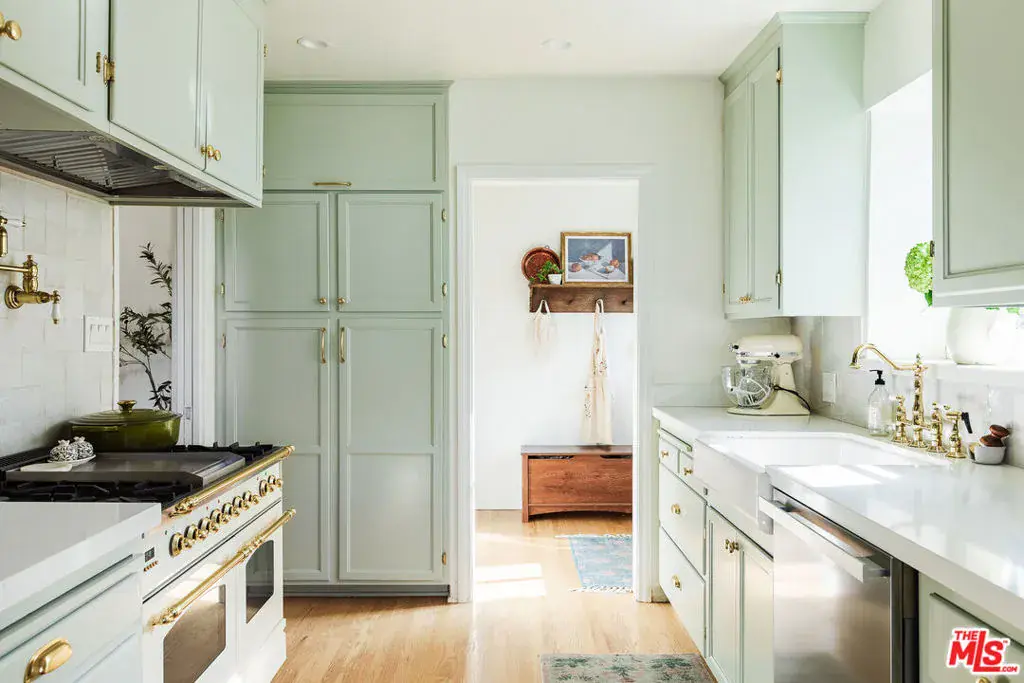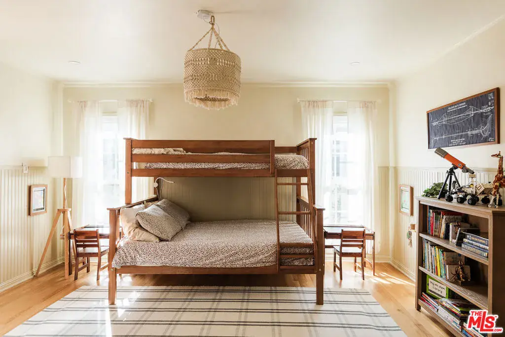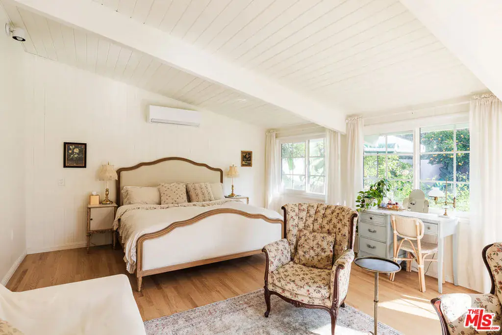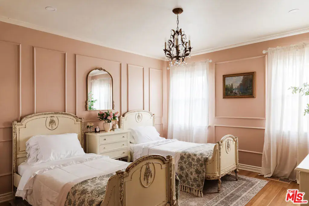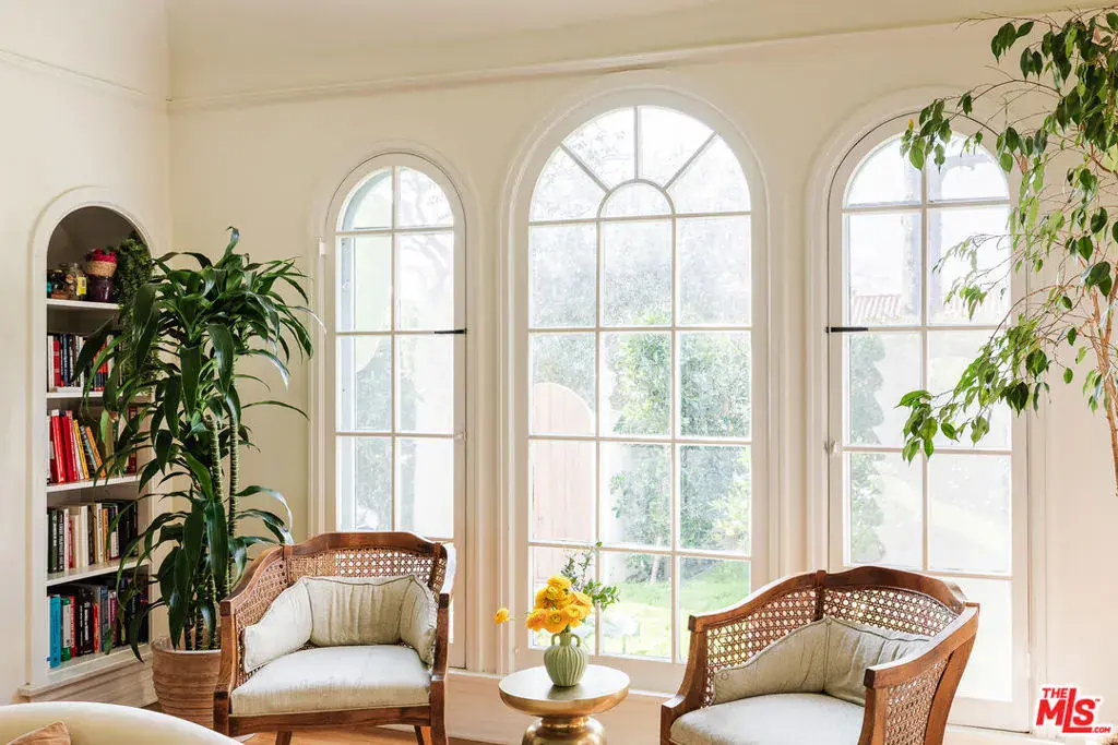 A storybook 1923 Spanish, gracefully gated and filled with natural light, this Hancock Park home offers timeless beauty and effortless livability in one of Los Angeles’ most cherished neighborhoods. The 3-bedroom, 2-bath residence blends classic architecture with thoughtful modern upgrades, all within a close distance of the coveted Third Street Elementary, Larchmont Village, Pan Pacific Park, and everyday neighborhood favorites. Inside, rich natural cherry wood floors and beautifully preserved original details create a sense of warmth and continuity throughout the home. A classic Batchelder fireplace anchors the living space, complemented by built-in bookshelves, elegant architectural archways, and a terracotta roofline that celebrates the home’s Spanish heritage. Light pours in throughout the day, enhancing both the craftsmanship and the inviting atmosphere. The kitchen is both charming and highly functional, featuring artisan Zia zellige tile, a cozy booth-style breakfast nook, and top-of-the-line appliances perfect for casual family mornings and relaxed entertaining alike. The oversized primary suite is a serene retreat, offering a generous sitting area bathed in natural light and peaceful views of the backyard, along with a beautifully appointed en suite bath. A secondary bedroom is complemented by a large adjacent sunroom, ideal for a child’s playroom, creative studio, or home office. The primary bath features a Moroccan hammam-style shower with handcrafted Zia zellige tile and a marble water basin, while the second bath retains its original Art Deco tile, adding timeless character. Behind automated gates, the private backyard unfolds into a tranquil garden oasis with mature fruit trees including orange, pomelo, pomegranate, avocado, tangerine, lemon, and lime alongside a playground and lush privacy hedges. The space offers rare seclusion and versatility for play, entertaining, or quiet afternoons at home. Thoughtful infrastructure upgrades include all-new electrical, a 200-amp panel, and a 40-amp EV/Tesla charging station. With exceptional proximity to Trader Joe’s, cafes, and neighborhood favorites, this soulful Hancock Park home offers character, comfort, and an effortless Los Angeles lifestyle.