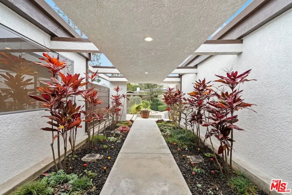 An exceptional offering of refined mid-century living with an atmosphere that is both sophisticated and effortlessly relaxed. Truly a rare and special residence. Privately situated on a quiet cul-de-sac, this impeccably maintained single-level home delivers the ideal balance of seclusion and immediate access to the finest dining, shopping, and cultural amenities Los Angeles has to offer. Designed for seamless indoor-outdoor living, the open floor plan unfolds around a striking pool, with all major rooms oriented to capture the serene setting and create a fluid connection to the outdoors an entertainer’s dream with complete privacy at the pool. Rich hardwood floors run throughout, enhancing the home’s clean architectural lines. The elegant primary suite serves as a tranquil retreat, featuring a luxurious bath and a huge walk-in closet. Two additional generously scaled bedrooms complete the thoughtfully designed layout. A rare opportunity to experience Southern California living at its most polished and timeless.