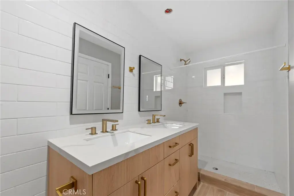 Contemporary bathrooms with tile surrounds and updated fixtures