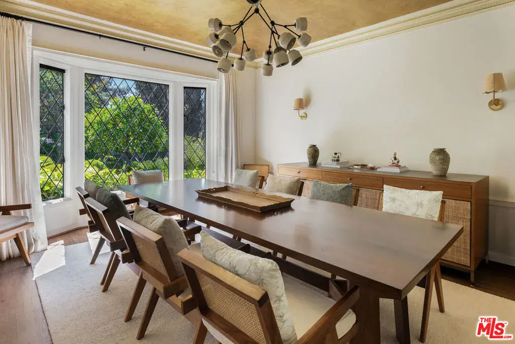 Holmby Designer Estate, As Featured in Traditional Home. Rarely does a residence of this caliber become available for sale. Designed by the renowned KMNELSON design, every surface and detail has been thoughtfully curated. This Traditional estate is a masterclass in architectural elegance and refined comfort.A gated entry reveals a European-inspired front garden with a mystical fountain and lush landscaping, setting the tone for the grandeur within. The formal living room is ideal for both intimate gatherings and grand affairs, seamlessly flowing into a sophisticated, wood-paneled gentleman’s library with a fireplace. A west-facing formal dining room captures golden afternoon light, while the chef’s kitchen delights with top-tier appointments and a veranda perfect for morning coffee or evening cocktails. Two powder rooms complete the main level’s gracious floor plan. Upstairs, four serene ensuite bedrooms await. The primary suite offers dual custom walk-in closets, a sitting room with a fireplace, a spa-like bath, and a private balcony overlooking the enchanting backyard. On the lower level, two versatile private offices (or additional bedrooms with bathrooms), a media room, laundry, workstations, and an additional powder room, all open directly to the gardens. Outdoors, European-style grounds feature a glistening pool, expansive patios, and an oversized fireplace for al fresco evenings. The outdoor kitchen, complete with a Kalamazoo grill, invites culinary creativity and stylish entertaining. Added bonus: The home features an extra-large attic, providing numerous options. Every inch of this extraordinary family estate reflects artistry, craftsmanship, and timeless sophisticatio,n a rare opportunity to experience the very best of Holmby Hills living.