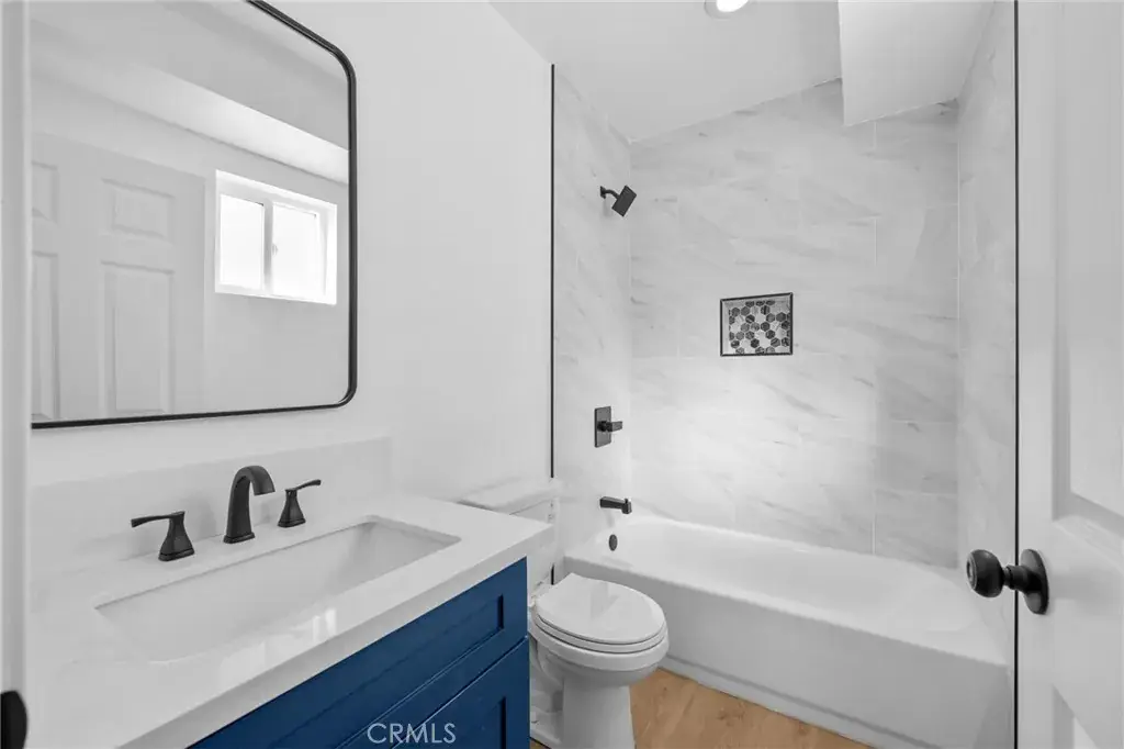 Inside, you’ll find all brand-new appliances, quartz countertops, hardwood shaker cabinets with soft-closing hardware, and thoughtful pull-out storage features such as lazy Susans. The kitchen shines with undermount sinks, a full marble-tile backsplash, and modern finishes throughout. The home features LVP flooring in every room and full tile bath enclosures that elevate the space.