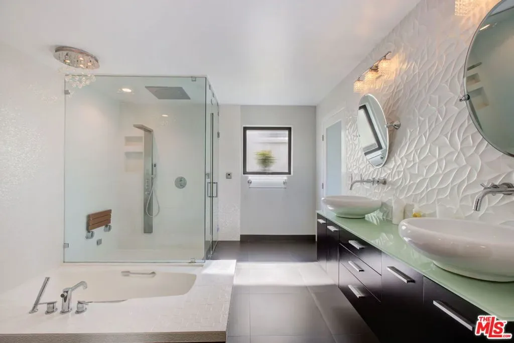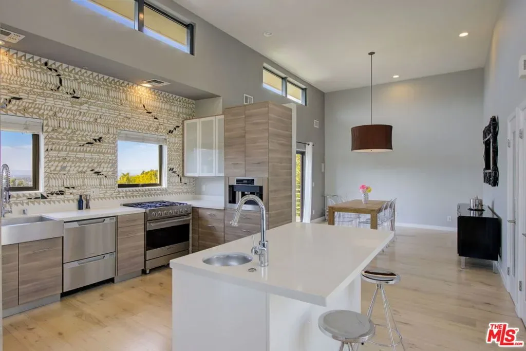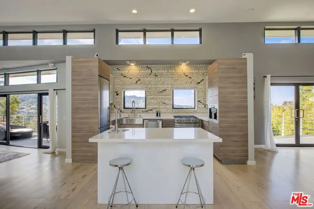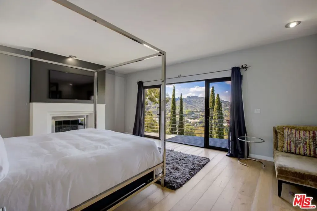 Exceptionally remodeled post modern home in the Hollywood Hills with a Grand scale loft-inspired open floor plan featuring a dramatic step-down living, dining, kitchen & media area with high ceilings, clerestory windows and impressive glass doors that frame breathtaking hillside & skyline views. Multiple decks for easy indoor outdoor entertaining. Open kitchen with Caesarstone counters, custom mosaic wall, center island, SS Fisher Paykel, Viking & Miele appls. Luxurious primary suite features fireplace, walk-in closet & balcony. Bathroom finishes include electronic Toto toilet, steam shower, sunken soaking tub, dual sinks. 4th bedroom, with massive wood barn door is currently set up as a den/office with built-in closets & shelves. Lounge on the private courtyard and relax in the hot tub under the stars. Enjoy the sunsets everyday! Near Great Hiking At Lake Hollywood, Close to Ventura Blvd, Mulholland Dr and Every Studio! 1+ year lease, furnished. Short term lease under 12-months may be considered. Showing by appointment only. Property is occupied. Please do not disturb tenants! Inquire for showings and more info.