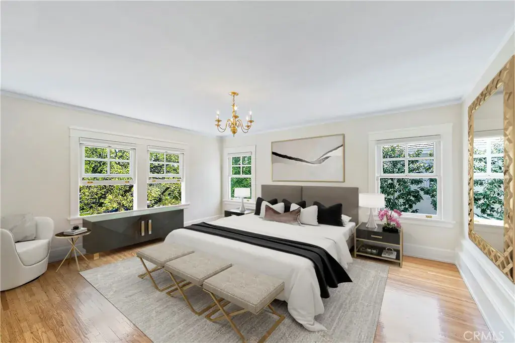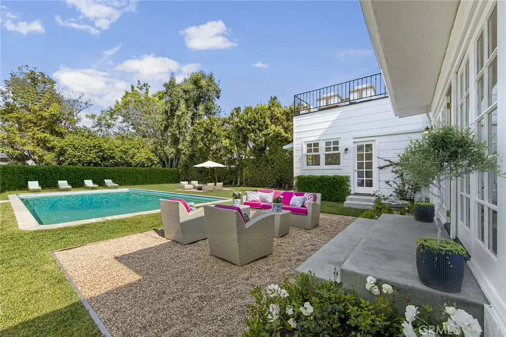 ALL NEWLY RENOVATED AND MOVE-IN READY! This breathtaking 5 bedroom, 4+ bathroom estate with 2-car garage sits upon an ultra-luxe 13,525 square ft. (.31 acres) lot and is conveniently located within short-walking distance to the prestigious Marlborough School and vibrant Larchmont Village. On the market for the first time in over 50 years, this freshly renovated, historic 1927 Georgian style estate located in highly coveted Windsor Square in Hancock Park. Designed by well-known Windsor Square architect Robert D. Jones, this gem is ideally situated behind mature magnolia and pear trees and accented with wood siding and white brickwork. Honoring the property’s historical and architectural integrity, every inch has been meticulously restored. Renovations include ALL-NEW custom landscaping, lighting, and irrigation, ALL-NEW driveways and walkways, ALL-NEW plumbing throughout the house and an ALL-NEW main sewer line to city street, ALL-NEW electrical throughout the house and a 400-amp main panel and subpanel in basement, ALL-NEW heating and air conditioning systems with enhanced capacity, ALL-NEW Thor Kitchen appliances, ALL-NEW ADT Security System, along with refurbished original wood windows and a combination of original period classic and new wide-plank honey toned oak flooring, this gorgeous estate epitomizes old-world elegance with a perfect blend of modern lifestyle spaces and conveniences. All of the rooms are filled with sunlight and overlooking the elegant front garden and estate scale rear lawn, bright blue pool and manicured garden spaces. Outside, well-proportioned conversation spaces surround the pool, in conjunction with lush expanses of lawn up to the edge of the pool and immersed in rose and star jasmine-filled aromas that create a classic setting to entertain, play or relax amidst the serene private garden. Anchoring the grand rear garden area, and unique to most residences in Windsor Square, is a detached guest house with a Certificate of Occupancy and complete with ½ bath, that can be adapted to any number of creative designs from home office to exercise studio. Additionally, at the front of the residence is a separate two-car garage enhanced with ample side-by-side space in the driveway for 4 additional cars. This home was featured in Matthew Broderick’s 1983 film “War Games”.
