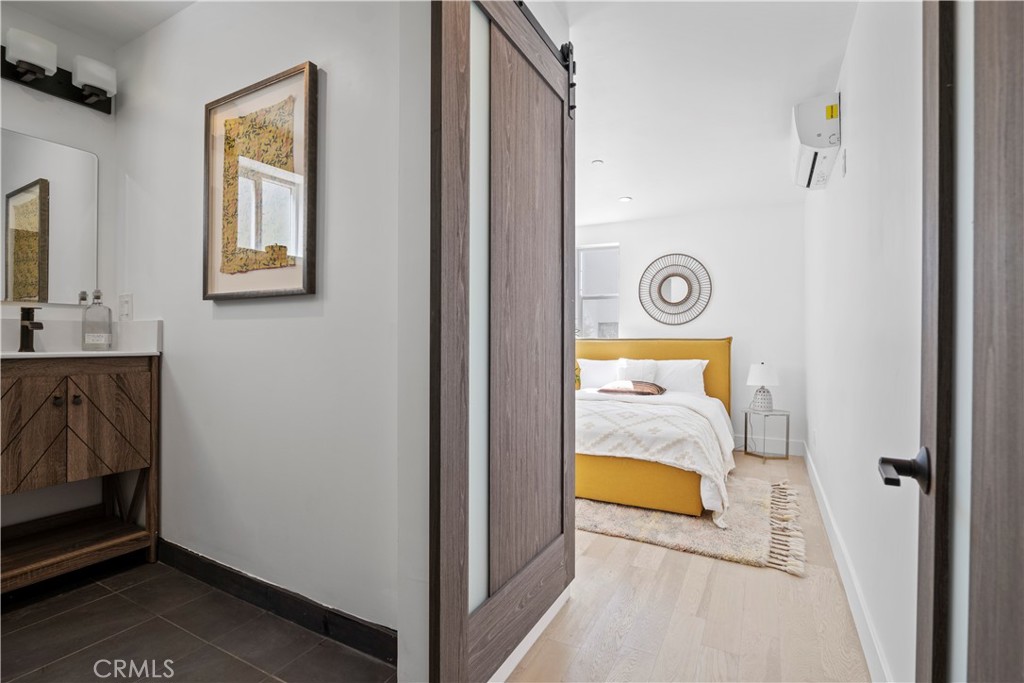 The fully detached accessory dwelling unit features nearly 800 sqft. of newly built living space with two bedrooms and three baths. Upon entering, the first floor features a well-appointed kitchen, living space, and patio. Upstairs, two en-suite bedrooms with a laundry room create an ideal layout. Currently tenant-occupied, this ADU offers various possibilities, whether as an income generator, guest accommodation, or personal sanctuary. Outside, an automatic driveway gate leads to an oversized garage—a rare feature when combined with an ADU.