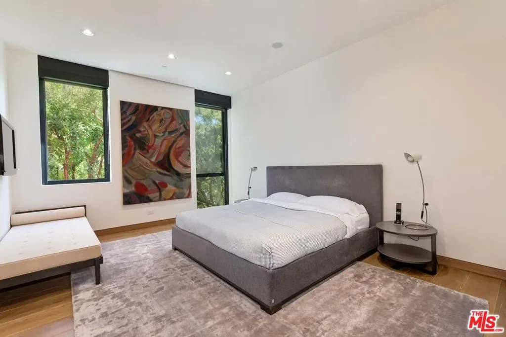 Located within the guard-gated enclave of Stoneridge Estates, this contemporary residence sits on over one acre of flat, usable land and offers privacy, scale, and city light views. Originally designed by Assembledge+, the home features a blend of brick, wood, steel, glass, and concrete throughout. Interior spaces include high ceilings, expansive living areas, and seamless indoor-outdoor flow through floor-to-ceiling openings. The kitchen is equipped with high-end appliances and designed for both everyday use and entertaining.Outdoor amenities include a zero-edge pool, large grassy yard, outdoor dining area, built-in BBQ, and fire feature. Additional features include a screening room, wine cellar, guest quarters, motor court, and home automation system.Optional furnishings available. Located in a private community of 11 residences.
