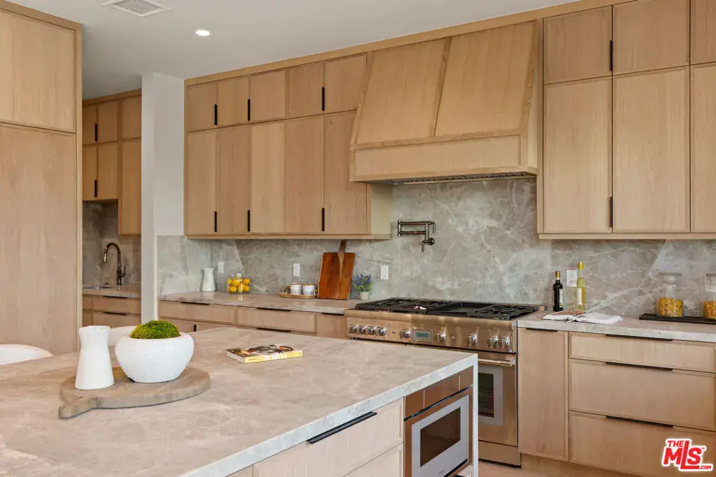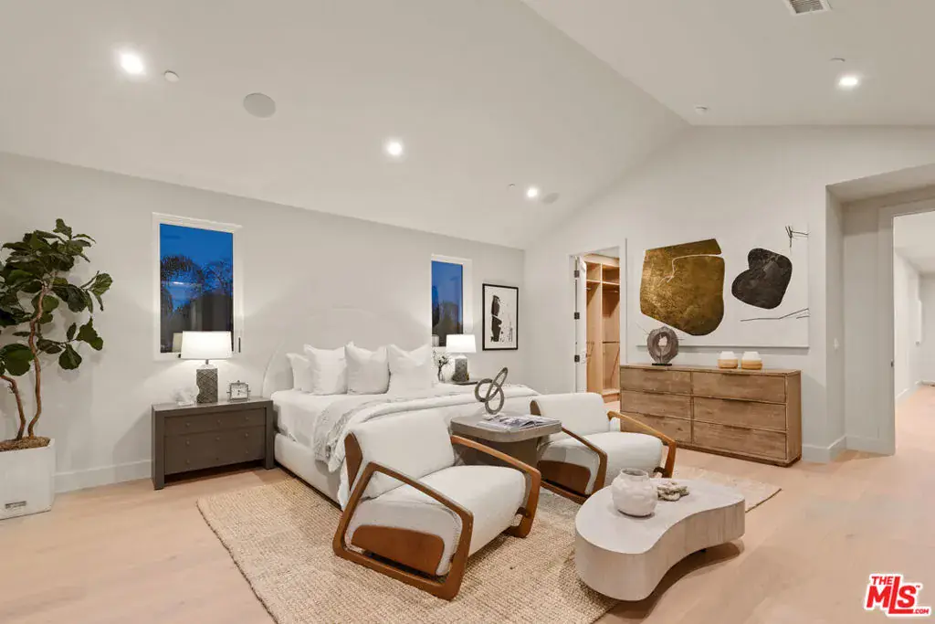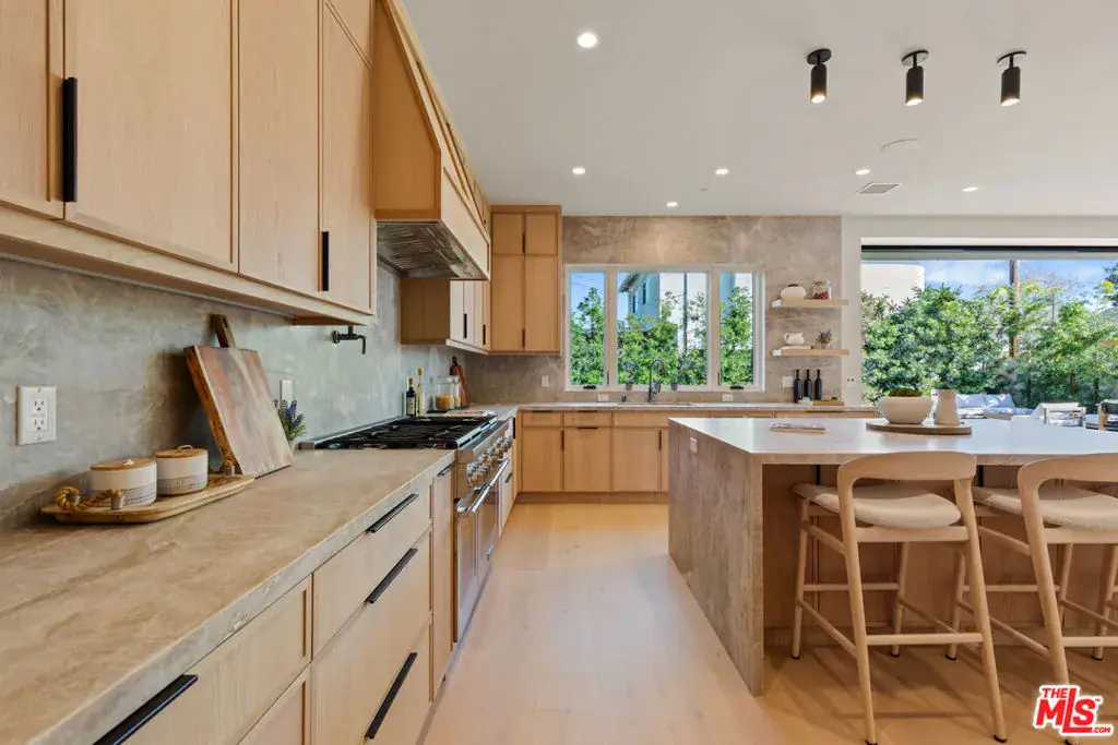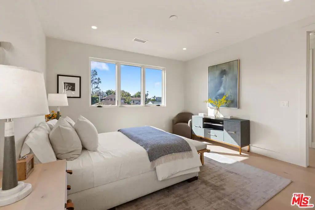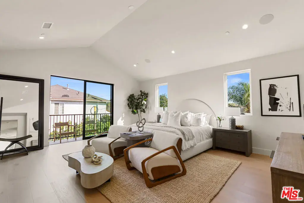 Experience elevated living in this brand-new architectural residence located in the heart of prime Mar Vista. Spanning approximately 4,134 square feet, this 5-bedroom, 4.5-bath modern masterpiece seamlessly blends clean contemporary lines with warm, timeless finishes. Light-filled open living spaces feature expansive windows and Fleetwood pocket doors, creating a true indoor-outdoor California lifestyle, complete with a thoughtfully designed mudroom-style entry closet.The stunning Taj Mahal stone chef’s kitchen is equipped with custom rift oak cabinetry, top-of-the-line Thermador appliances, and a sleek butler’s pantry, while natural stone finishes carry throughout the spa-inspired bathrooms. An elegant dining area flows effortlessly into the spacious family room, highlighted by plaster built-in shelving and integrated built-in speakers, ideal for both everyday living and entertaining. Built-in speakers extend throughout the home, enhancing comfort and functionality.A private main-level in-law suite provides ideal flexibility for guests or multi-generational living. Upstairs, the luxurious primary suite impresses with vaulted ceilings, a spa-like bath featuring an oversized walk-in shower, a custom walk-in closet, and refined finishes throughout.Designed for year-round enjoyment, the outdoor living spaces offer inviting lounge areas, while wired security cameras provide added peace of mind. Ideally situated just minutes from Venice, Abbot Kinney, Santa Monica, Culver City, and Mar Vista’s best dining and shopping, this exceptional home offers the perfect blend of style, comfort, technology, and location.