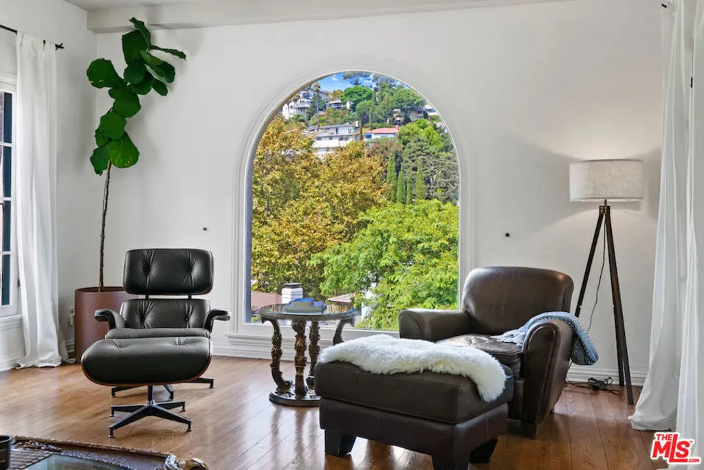 Spacious classic Spanish 4 Bedroom home nestled in the prime location of the Los Feliz foothills. Spread over main- and second floors, it offers an abundance of space and architectural details: such as an arched panorama window overlooking the hills, original tiled staircase, light fixtures and hardwood floors. Breathtaking city-, hills-, and mountain views. Generous sized bedrooms, a formal dining room, and a beautiful large living room with a work space add to the flow of this beautiful home. The 4th bedroom (incl a built-in work/desk area) is used as an exercise and meditation space. Plenty of outdoor areas to entertain, regroup, relax: there is a large sundeck with lounge chairs and outdoor dining table for al-fresco soirees or BBQ’s; a private patio with views on the adjacent hills for get-togethers, business meetings, or a glass of wine after a busy work day. There is also a lush front yard by the loggia entrance to enjoy the magnificent views of the San Bernadino Mountains or the Los Feliz hills. Internet throughout is included. Fully furnished and ready for your creative sabbatical, work at home needs, family vacation, temporary stay while your home is under renovation, or new longer term residence. Close to shops, restaurants, coffee places or/and movie theatres of the popular Los Feliz village; minutes from world renowned hiking- and horseback trails of beautiful Griffith Park, and adjacent to trendy Silver Lake. A quick drive to freeway accesses, connecting to the Westside and its beaches, and to Burbank, Downtown, Hollywood, Universal, Disney and Netflix, and everything else that LA’s best has to offer. Lease length is negotiable. Easy to show by appointment with listing agent.