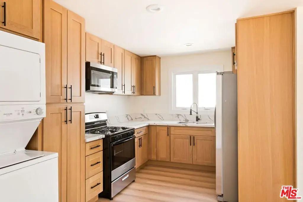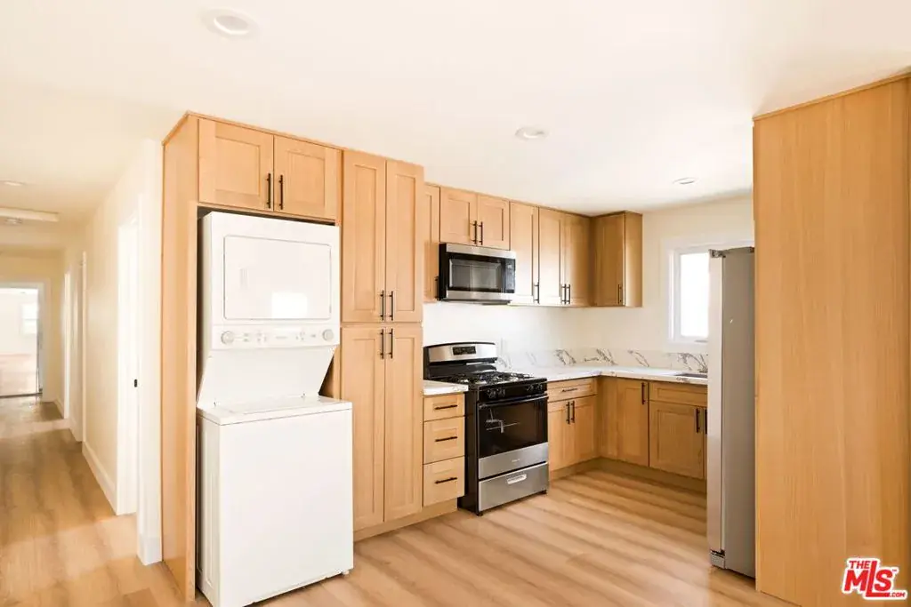 Modern living in the heart of Highland Park. This newly renovated 3-bedroom, 2-bath home pairs clean design with everyday functionality, just blocks from Figueroa Street’s cafes, restaurants, and nightlife. A welcoming front porch nods to the home’s historic character and provides a gracious entry. Inside, the open layout is bright and versatile, with wide windows and seamless flow between living, dining, and kitchen. The kitchen blends sleek design with efficiency, featuring brand-new appliances: refrigerator, gas range with oven, microwave, and stacked washer/dryer. The private primary suite offers a contemporary bath with a double vanity, arched mirrors, and elegant gold fixtures. Two additional bedrooms share a second full bath finished with designer tile and matte black accents. Throughout, clean lines and thoughtful finishes create a refined feel. Ductless heating and air ensure year-round comfort, and off-street tandem parking is included. This residence delivers the luxury of a newly remodeled home with the convenience of an ideal Highland Park location.
