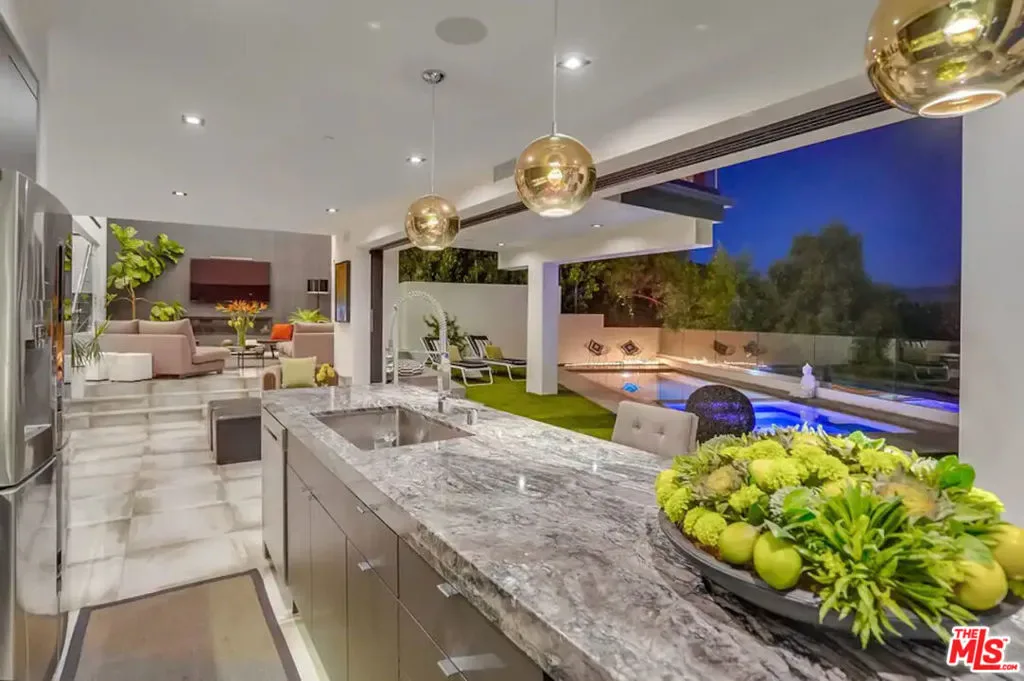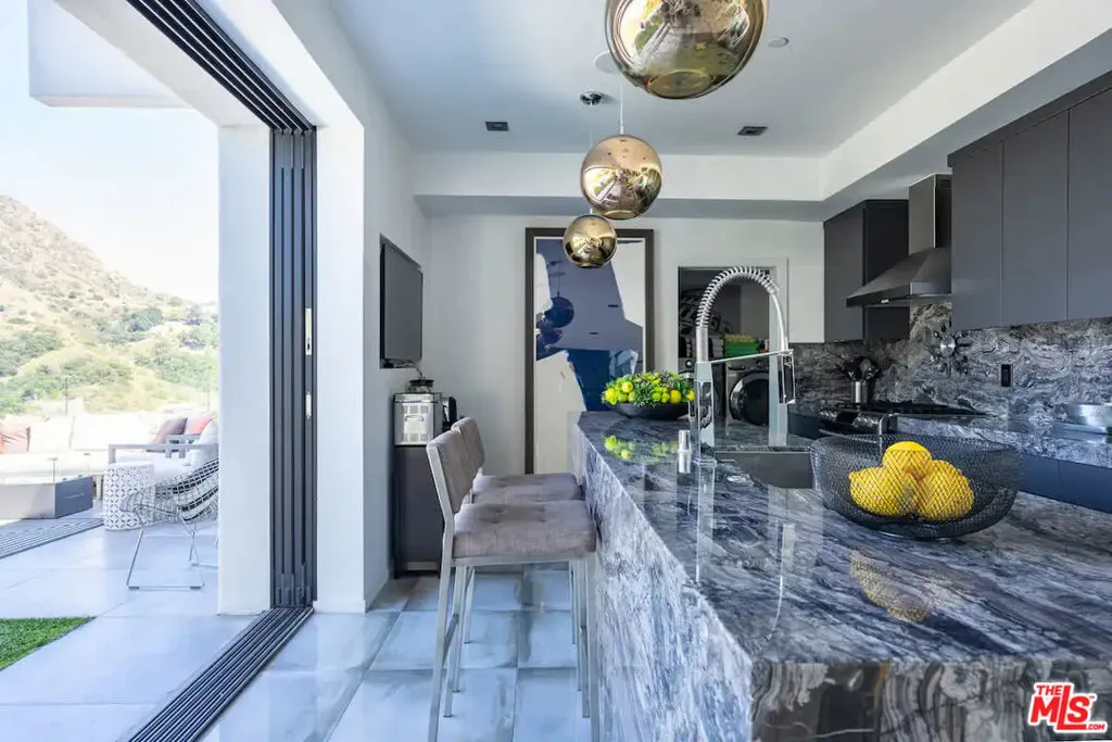 This property is available for short-term and long-term rentals, each with its respective pricing options. It is fully furnished, decorated, and equipped with hotel-like essentials and amenities. With our concierge team available to assist 24/7, this home rental offers a five-star hospitality experience, whether you are staying for a few days, a month, or a year.Nestled in the Hollywood Hills, this modern home features an open floor plan and sits on two lots, offering panoramic views from every room. Elevated above the street, this exquisite 4-bedroom, 4-bathroom home boasts 2,786 sqft of exquisitely finished interior and exterior spaces, perfect for entertaining or enjoying the breathtaking surroundings. The gourmet kitchen with a marble waterfall island opens up to the living room, which features double-height ceilings. Both rooms completely open up to the backyard with a zero-edge pool, spa, grassy area, and lounge area with a fire pit, all accessible through Fleetwood sliding doors. The master bedroom features a private balcony and a two-way fireplace that leads into a grand bathroom with his/her vanities, a soaking tub with romantic sunset views, and a gorgeous chandelier that sets the mood for a relaxing evening. Endless amenities and detailed touches include European imported lacquer doors and walk-in closets, crystal pendant lighting, smart appliances, surround sound, multiple fire features, and a combination of gloss tile and hardwood flooring.