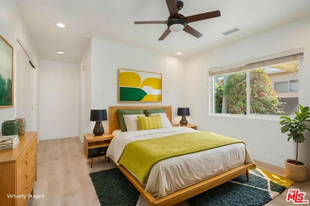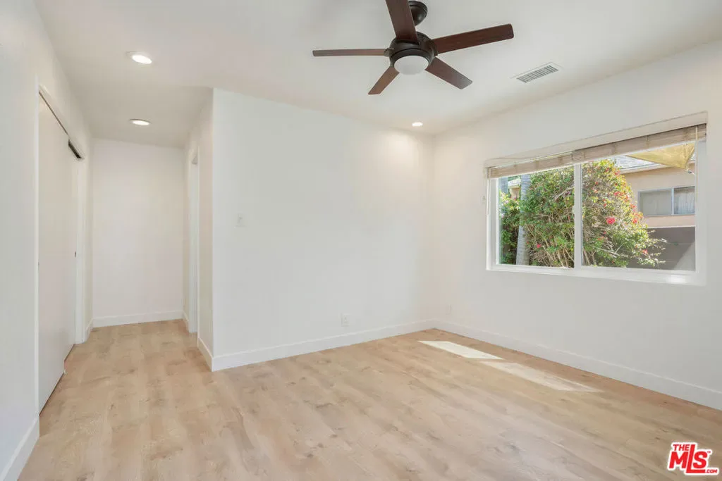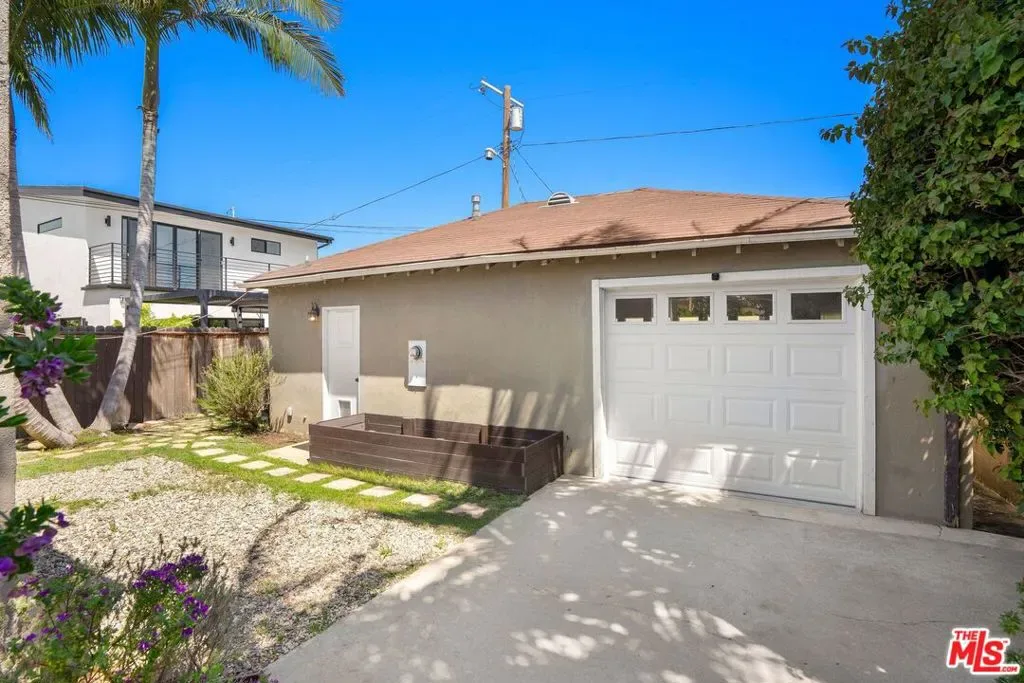 Tucked away on a quiet, tree-lined street just two miles from the beach, this updated Spanish-style bungalow offers the best of Westside living. With modern upgrades throughout and classic curb appeal, including mature palms and a tiled front porch, this 3-bedroom, 2-bathroom home is both stylish and functional. Step inside to find an open, airy layout with new flooring, dual-pane windows, and recessed lighting. The living area flows into a spacious galley kitchen with rich wood cabinetry, stainless steel appliances, and a sunny view of the side patio, perfect for al fresco dining or a private morning coffee. The primary suite features an en suite bathroom with dual sinks, while a bonus room off one of the bedrooms offers ideal space for an office, nursery, or playroom. At the rear of the property, a rare detached 3-car garage has been finished to include a dedicated laundry room, workshop, and lounge-ready flex space accessible via both the driveway and alley with automatic garage doors. The enclosed yard offers additional privacy, shade, and low-maintenance landscaping. Located within the Walgrove Elementary, Mark Twain Middle, and Venice High school boundaries, this home combines everyday comfort with unbeatable convenience.