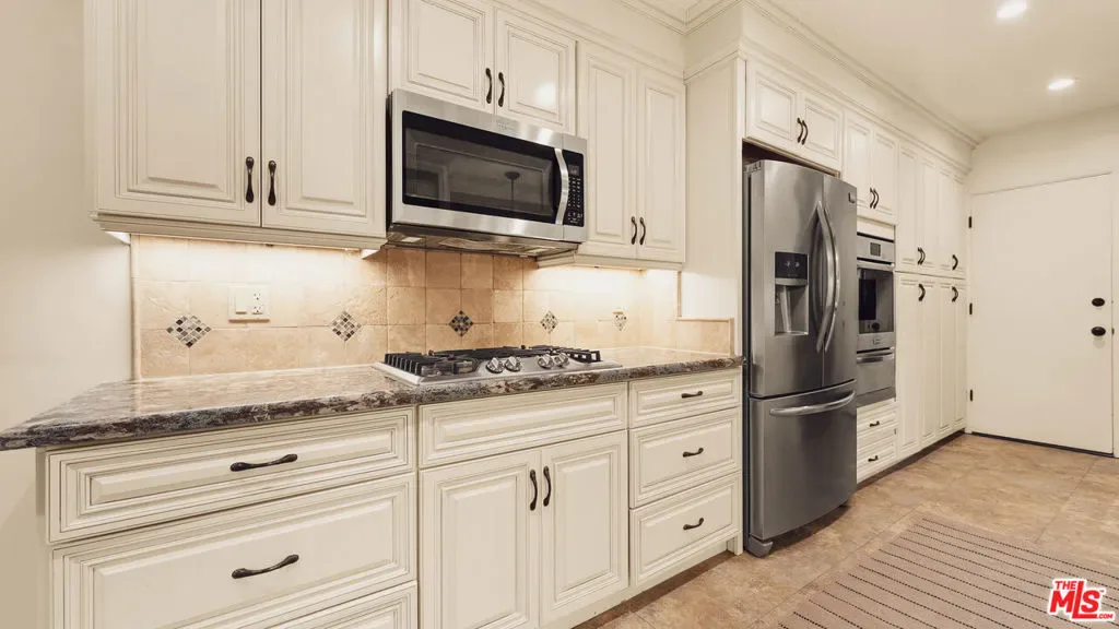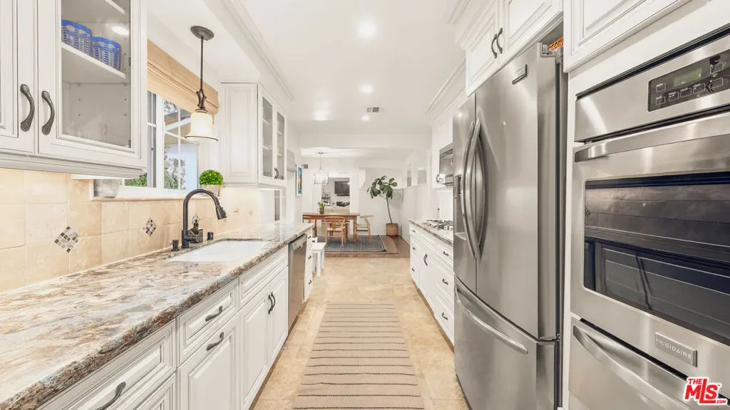 Best value in Mandeville Canyon under $2M! Charming in every sense, this Brentwood retreat offers a rare blend of tranquility and convenience just moments from the Brentwood Country Mart and the best of the Westside. Nestled among mature white birch and pepper trees, with fragrant rose and rosemary gardens, the home unfolds as a peaceful escape surrounded by natural beauty. An expansive living room, anchored by a classic brick fireplace, opens through glass doors to the rear patio and yard, creating a seamless indoor-outdoor flow. The galley-style kitchen is appointed with stainless steel appliances, granite countertops, and a tiled backsplash, and connects effortlessly to a sunlit formal dining room. The primary suite features a cedar-lined walk-in closet and a well-appointed ensuite bath with dual vanities and a glass-enclosed shower with bench seating. Two additional guest bedrooms enjoy abundant natural light and verdant outlooks, complemented by a secondary bath. Additional highlights include walnut hardwood floors, crown moldings, recessed lighting, generous built-in storage, and a two-car garage with direct entry. Set on an expansive 14,500+ square foot lot, the rear grounds provide exceptional privacy, a serene connection to nature, and ample potential for expansion or an ADU. Located within the coveted Kenter Canyon, Paul Revere, and Palisades High school districts, this property presents a rare opportunity in Brentwood.