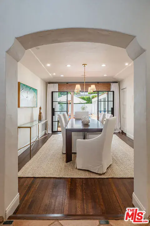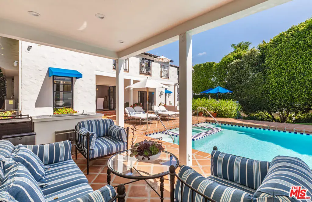 Located on prestigious Comstock Avenue in exclusive Little Holmby, this exquisite Spanish estate offers 4 bedrooms, 4 bathrooms and 2 powder rooms. Thoughtfully reimagined for modern living while preserving its architectural character, the residence celebrates timeless details with exposed wood-beamed ceilings, soft arches, wrought-iron accents and the warmth of natural materials like Saltillo tiling, wood and stone. A soaring two-story foyer with a dramatic staircase and artisan ironwork set the stage. Throughout, original elements meet elevated updates: hand-hewn beams, marble finishes and sunlit rooms. The main level features a versatile office with custom built-ins and a charming den/study with a corner fireplace. The pristine eat-in kitchen is anchored by terracotta tile floors, Calacatta marble countertops, generous storage and an adjoining breakfast room. The well-appointed, generous formal dining room, designed for entertaining, connects seamlessly to the terrace and pool through French doors, while the formal living room, framed by a grand fireplace and exposed wood beams exude sophistication. The spacious family room with soaring ceilings, Juliet balconies and dual sets of French doors creates effortless indoor-outdoor flow to expansive terraces for dining, lounging and entertaining. Upstairs, the ambient light-filled primary suite serves as a sanctuary with Juliet balconies, a fireplace, a secure custom walk-in closet with additional custom built-ins and a marble-clad bathroom featuring a soaking tub, standing shower and dual vanities. French doors open to an expansive terrace overlooking the lushly landscaped grounds. Two additional bedrooms complete the upper level, one with Juliet balconies, the other a junior suite with terrace access and bespoke storage.The lower level reveals a private guest bedroom suite with its own entrance, along with a laundry room, abundant storage, a two-car garage and a private gym with separate exterior entrance.Outdoors, towering hedges and mature trees, envelope the verdant grounds in privacy. Blooming flowers frame the sparkling swimming pool and spa, while a covered cabana with powder room, built-in barbecue and multiple alfresco dining and lounge spaces create a resort-like setting. With thoughtful modern amenities and effortless proximity to UCLA, Westwood Village, Beverly Hills, and Century City, this residence presents a rare opportunity to experience the beauty, privacy and prestige of Little Holmby living.