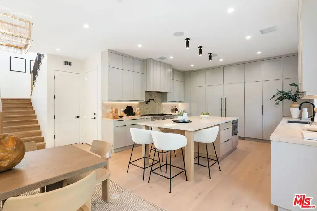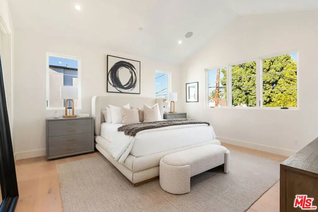 Newly built contemporary style home by Smart Builders, known for custom design work and attention to detail. Located on a lovely Mar Vista cul de sac street, the stone front greets you with warmth and elegance. Walking through the front door, your attention is directed to the high ceilings, open floor plan and a wall of glass opening to a wonderful grassy backyard. The gourmet kitchen with hand selected honed marble slab counters, an abundance of white oak cabinetry and thermador appliances opens seamlessly to the great room with fireplace and warm finishes, exactly as you have on your wish list. The downstairs secondary primary suite is not just a bedroom or office option, it’s big enough to be both. There are a total of 5 bedrooms, 4.5 baths, including the powder room and downstairs suite. The upstairs primary suite is perfect with a walk-in closet and a bathroom with freestanding tub and beautifully appointed wide-plank engineered white oak floors throughout. Clearly this thoughtfully crafted estate speaks for itself every step of the way. Enjoy the convenience of being near Mar Vista’s Farmers’ Market and local restaurants.