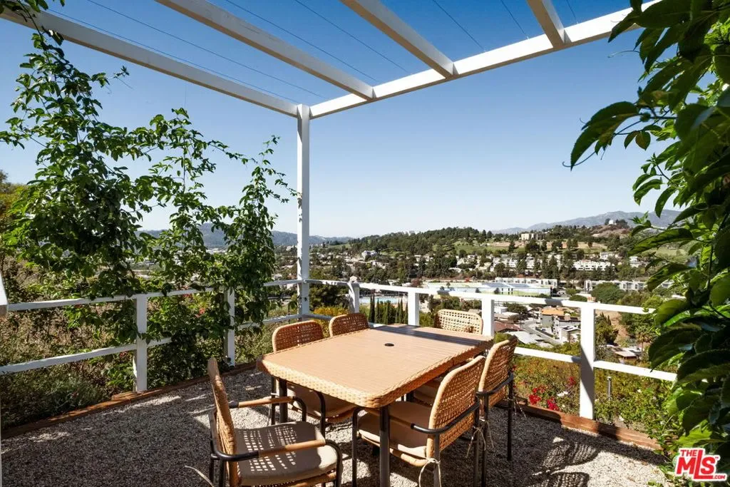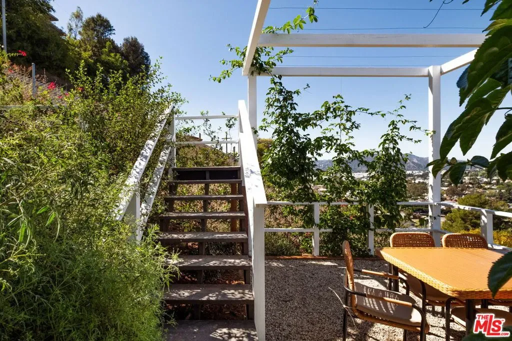 Perched high in the Northeast L.A. hills, this private modern three-bedroom, two-and-a-half-bath home serves up panoramic mountain-to-city views from nearly every room. A private entry deck opens to an airy great room wrapped in oversized windows and accordion doors that pull the scenery right inside. Interiors designed by Kelsey Sundberg feature smooth Venetian plaster that adds a soft, luminous finish throughout, while the ceiling-mounted projector and screen transform the living area into an effortless home theater. Step out to multiple balconies to take in sunrise, golden-hour dinners, and twinkling city lights. The bedroom level is a serene retreat: a view-filled primary suite with a walk-in closet and spa-style bath, plus two additional bedrooms and a hall bath with its own connection to the outdoors. A flexible bonus room off the dining area can serve as an office or studio. Downstairs, terraced pathways lead to a vine-draped pergola, and a newly landscaped native garden is an intimate spot for entertaining above the hillside. Additional features include direct entry from the two-car garage, a separate laundry room, and generous storage. Easy access to Eagle Rock, Mount Washington, Frogtown, Los Feliz, and Silver Lake. Nearby to Glassell Park Recreation Center and minutes from Dunsmoor, Bub & Grandma’s, The Grant, And Destroy Coffee, and Wife and the Somm.