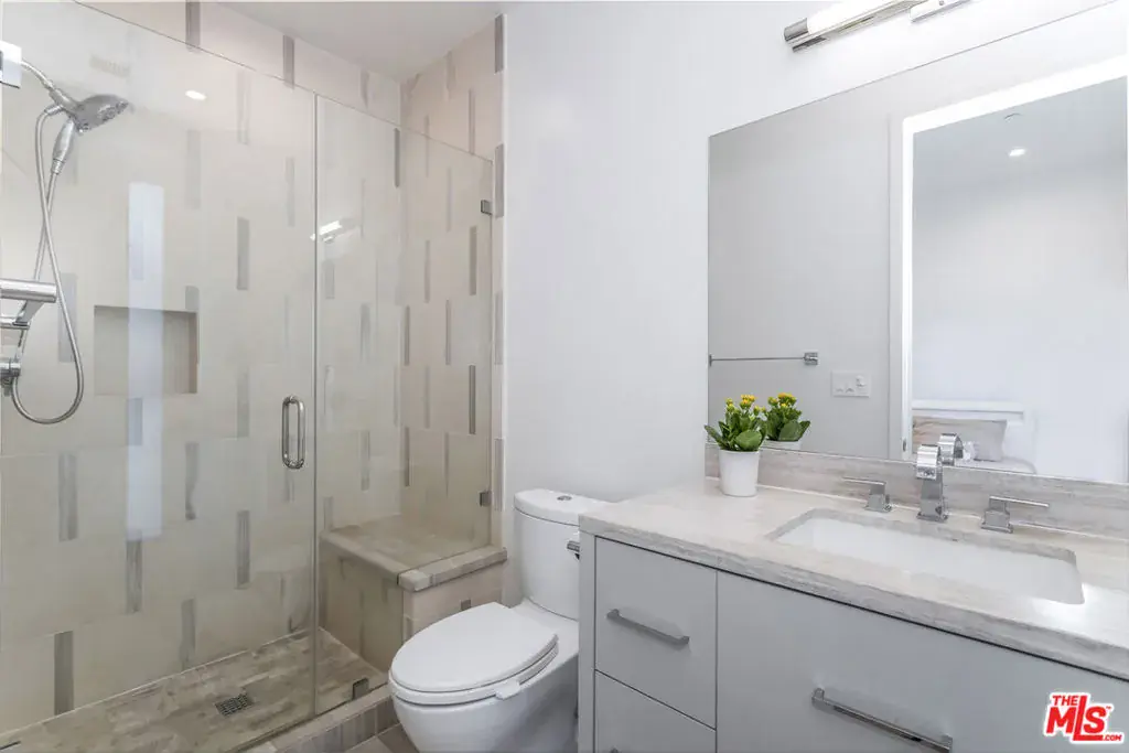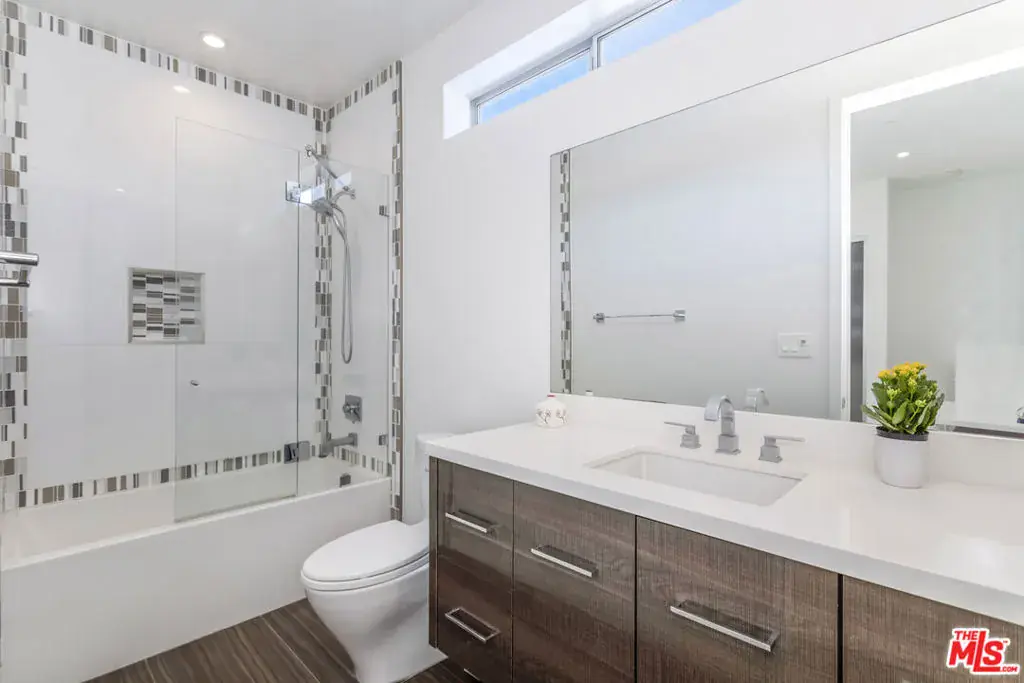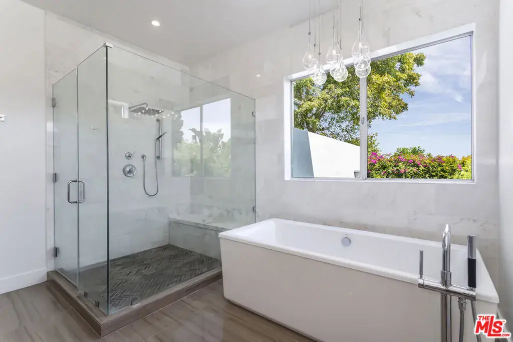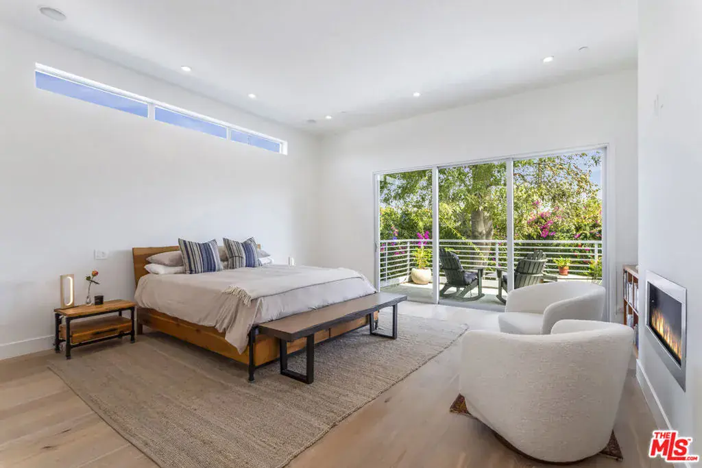 Nestled on a quiet street in the serene Mar Vista neighborhood, 3728 South Barrington Avenue is a stunning architectural home on a generous 8,591 square foot lot. This modern residence, encompassing 3,799 square feet, welcomes you with a dramatic 14-foot ceiling entry and expansive walls of glass that fill the space with natural light, highlighting the elegant refinished wood floors. The thoughtfully designed interior includes a private office, four spacious bedrooms, each with its own ensuite bathroom. The chef’s kitchen serves as the heart of the home, featuring an oversized island, Calcutta marble backsplash, and top-tier Thermador appliances, including a new oven and dishwasher. Entertain in style with the formal dining room and integrated speakers throughout this stylish haven. Relax in the expansive great room, complete with a fireplace and 10-foot sliding doors that open to a private, hedge-lined yard with a covered patio and a wide lap pool, and spa, solar heated, with new cover & new electronic control system. The primary suite offers a tranquil retreat with an 11-foot ceiling, fireplace, walk-in closet, and a private deck overlooking the pool. The spa-like bathroom features floor-to-ceiling Calcutta marble, an oversized shower, soaking tub, and dual sink vanity. Additional amenities include a two-car attached garage with 220 EV Charging Plug, tankless water heater, smart home readiness, and a new aluminum electronic slide front gate, ensuring both convenience and security. This Mar Vista gem is an entertainer’s delight, perfectly blending luxury and modern living.