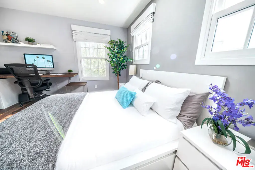 Fully furnished sanctuary compound available for 2-month to 11-month lease. Great Westside location, moments from Abbot Kinney and Venice Beach. Sophisticated single-family residence offering an ideal live/work environment. Sun-filled interiors blend California and European modern design with seamless indoor-outdoor living. Folding glass doors open to a private backyard with a shaded deck, a fire pit, a BBQ, and a dining area. Gourmet kitchen with premium appliances. Spa-style baths. Skylights. Smart-home automation. Enterprise-grade gigabit fiber internet and dedicated workstations throughout. Quiet, tree-lined street with ample street parking. Separate entrances; lease together or separately.