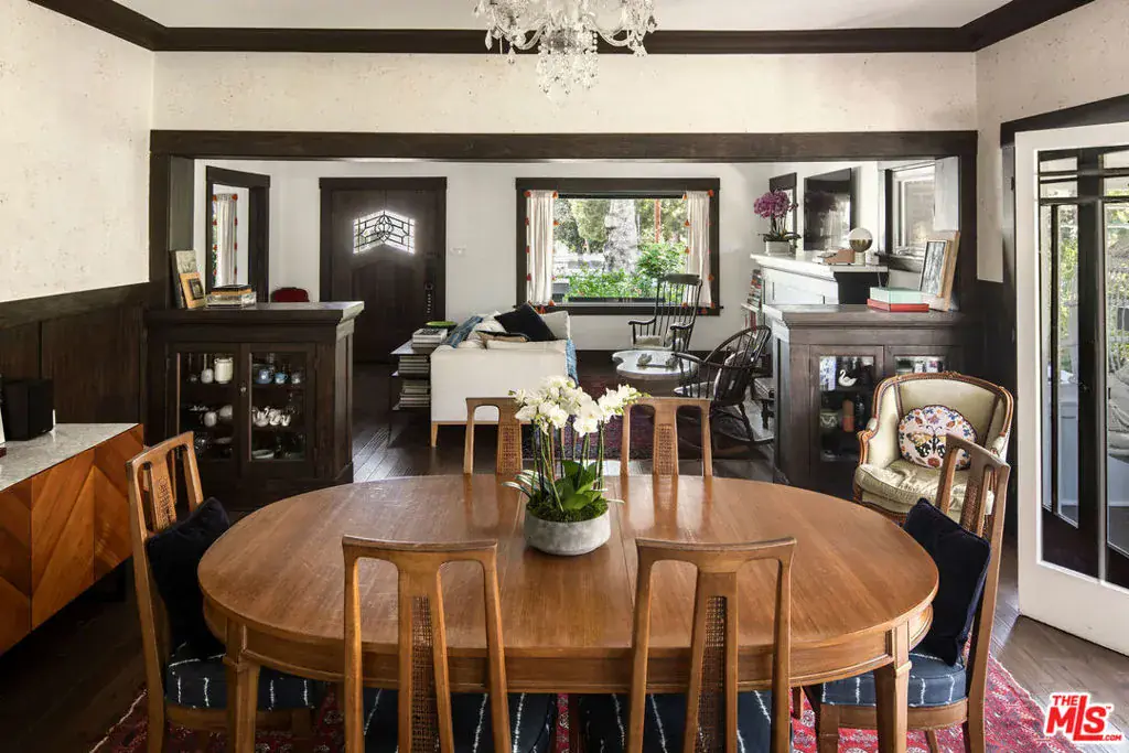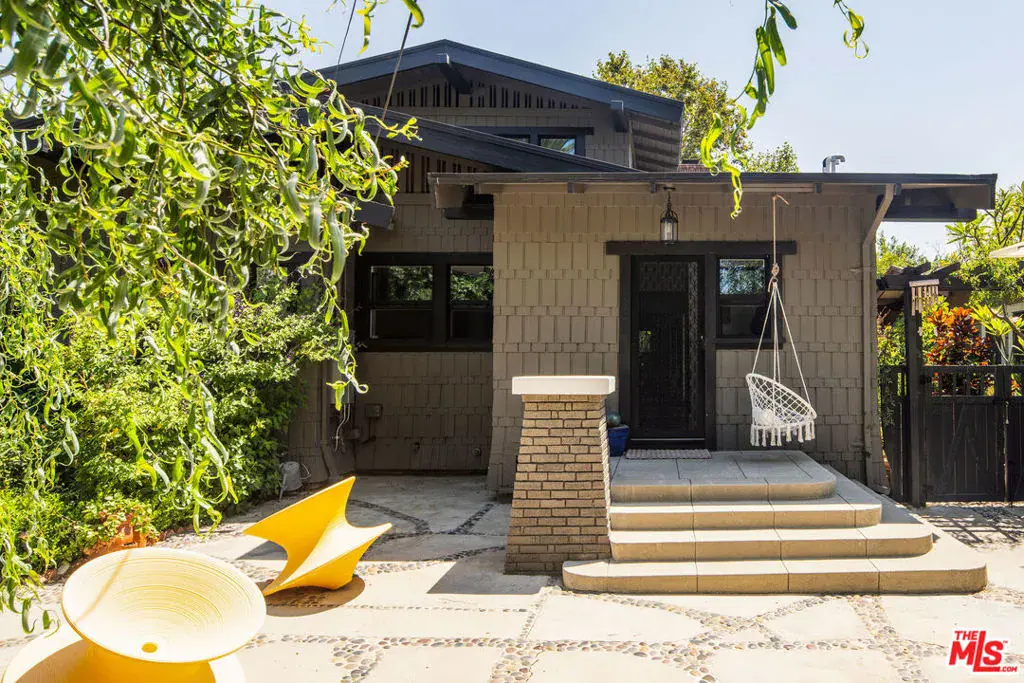 Gorgeous Craftsman rich with character and renovated to perfection on the Eastern edge of Larchmont village. The first restoration of this historic property came in 2019 when HGTV’s Tarek & Heather El Moussa purchased the home and spent months reimagining the design, while leaving cherished details in tact. A welcoming front porch wraps around the entire front of the house as the extra-wide wooden door with glass emblem detail leads you into the beautiful spaces. New hardwood flooring, dual-paned windows and designer touches can be found throughout. Original plaster walls, built ins and a newly-tiled fireplace create a warm ambience. Sunshine filters through as you make your way through the dining room, bonus sun porch and adorable eat-in breakfast area. The chef’s kitchen was completely redone with new cabinetry, quartz counters, high-end stainless appliances and a large center island with stools which has become the central gathering spot in the kitchen. Primary suite on the 2nd floor enjoys its own level and is surrounded by windows and views of the architectural roof lines. Ensuite primary bath with dual vanity, nickel fixtures and a custom-tiled shower with bench. On the first level are 2 spacious bedrooms that share a renovated hallway bath and a 4th bedroom (or office) nicely located in the front of the house. In 2024 the new caretaker of this lovely home picked up where the El Moussa’s left off. Creating gardens in the front and back – intentionally designed with beauty and longevity in mind. Meandering paths, a working pond and outdoor lighting create a tranquil atmosphere for day or night. The front enjoys a newly constructed privacy fence, designed to look like its been there for ages and a well-established jacaranda tree offers a canopy of privacy. Upgrades include foundation bolting, roof repair, electrical & plumbing upgrades and a new irrigation system. Decorator touches throughout include new hardware, window treatments and light fixtures. A new fence at the back of the property and a detached 2-car garage finished off for multiples uses. Take a short stroll to the Larchmont farmers market on Sundays and enjoy the strong sense of community in this beloved neighborhood.
