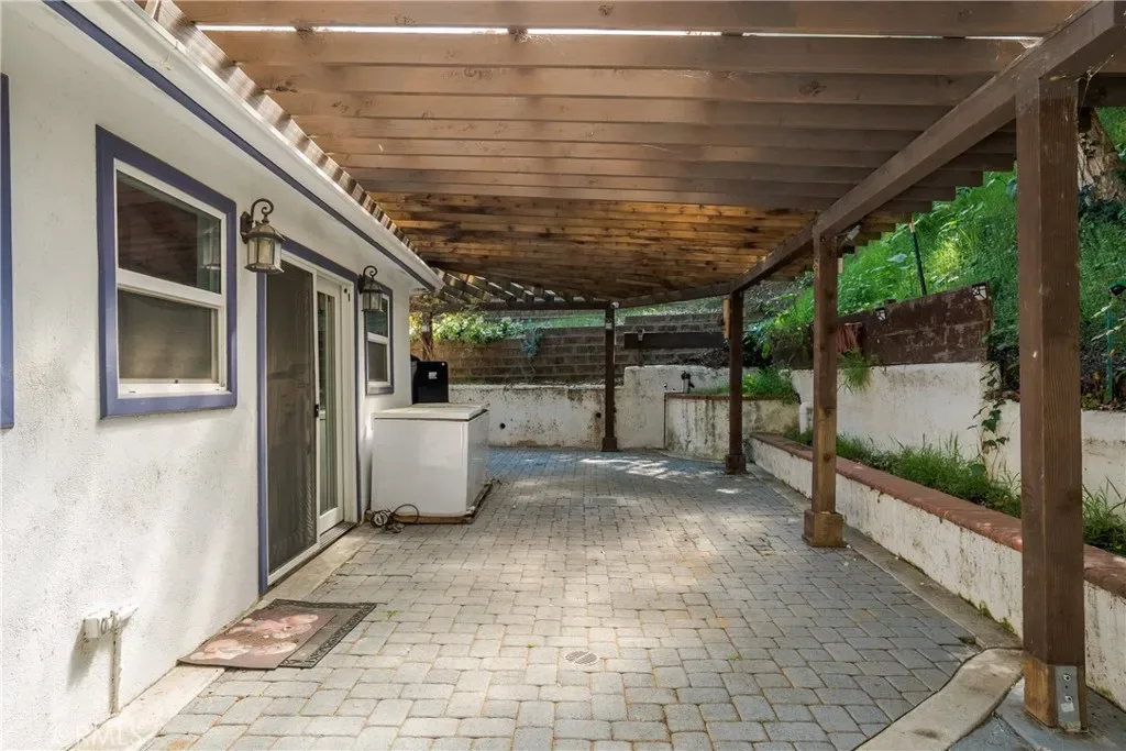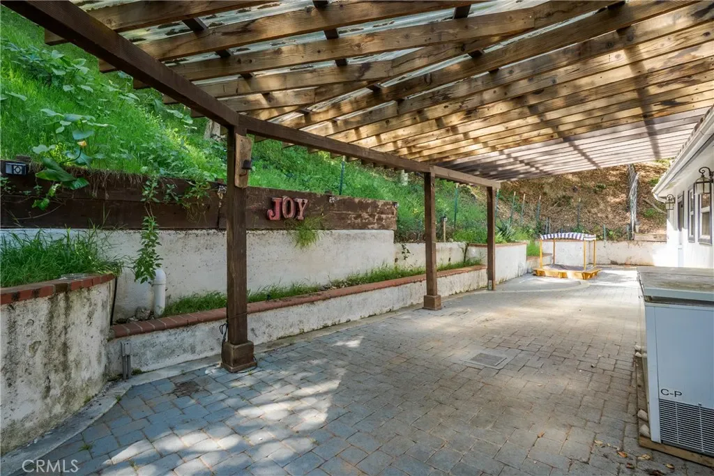 The generous lot offers a sense of space rarely found in Los Angeles, with mature landscaping, terraced outdoor areas, and plenty of room to relax or entertain while enjoying the surrounding canyon scenery.