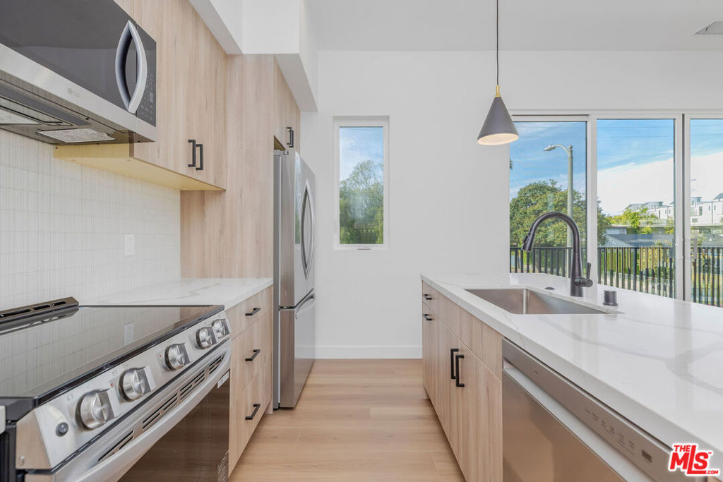 Brand new, never-lived-in corner townhome at The Pacific, where Venice’s iconic energy meets Santa Monica’s coastal polish. Soaring high ceilings and walls of oversized windows flood the home with natural light, framing the airy, open feel that sets this property apart. Wide-plank wood floors run throughout, grounding the space with warmth and texture, while large-format tile adds a sleek, resort-like finish in all the right places. The chef’s kitchen is outfitted with stainless steel appliances and anchored by custom cabinetry that blends beauty with serious storage. Designer fixtures and thoughtful lighting elevate every room. This is new construction with a genuinely curated touch. Retreat to spa-style bathrooms finished to the highest standard, or head up to the private rooftop jacuzzi deck, panoramic views, and string-lit evenings await. A home this complete, this new, and this well-located rarely comes to market. Steps to Abbot Kinney, the Venice Boardwalk, the historic canals, and the Santa Monica Pier. Live at the center of the Westside’s best.