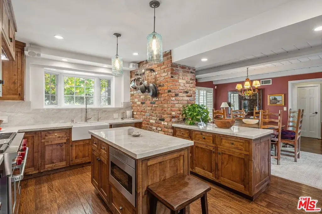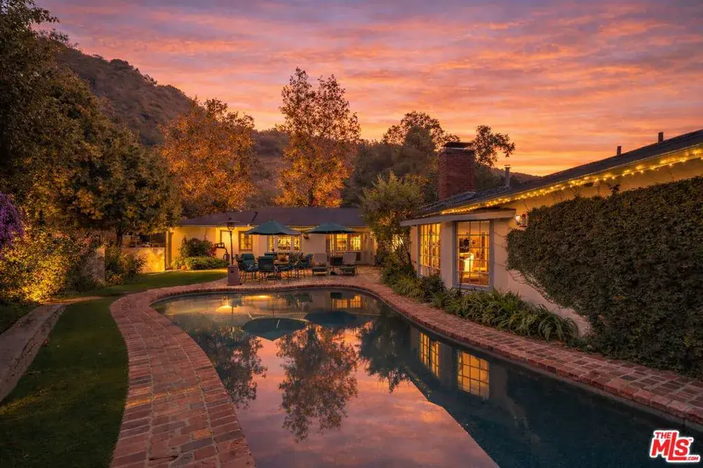 Tucked away in the coveted enclave of Upper Mandeville Canyon, 3859 Mandeville Canyon Road is a serene 1950s sprawling Ranch House nestled in the heart of one of Brentwood’s most prestigious neighborhoods. Set against a lush canyon backdrop, this warm and inviting retreat offers 2,644 square feet of effortless living with 4 bedrooms, 3 bathrooms, a bonus room perfect for an office or library, a formal living room and a cozy family room, organically blending classic character with thoughtful modern upgrades. Sunlit interiors flow seamlessly along the new hardwood floors, from the updated kitchen to the beautifully remodeled Primary Suite into expansive living and family rooms, creating a home that feels both intimate and ideal for entertaining. Outdoors, the property truly shines. A resort-style pool and spa, custom outdoor kitchen, waterfall feature, and newly installed turf, landscaping and lighting set the stage for relaxed canyon living, whether hosting gatherings or enjoying quiet evenings under the stars. Meticulously maintained and thoughtfully improved, including upgraded plumbing throughout, tankless water heater, central A/C and heat, hardwood floors, remodeled bathrooms, a renovated family room with stone fireplace, Sonos sound system, ADT security, and extensive drainage and landscaping enhancements. This is a rare opportunity to own a timeless canyon home that has been lovingly cared for, offering privacy, comfort, and the unmistakable charm of Brentwood living.