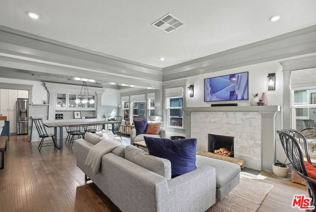Nestled among a row of classic Craftsman homes, 3878 S Harvard offers a beautifully updated take on this timeless architectural style. Fully remodeled in 2019, the home preserves its original charm with hallmark details including a spacious front porch, substantial entry door, coffered ceilings, wainscoting, built-ins, and ornate wood-framed windows. Off the living room is the front bedroom or office, with great afternoon light from the West facing window. Two more bedrooms are steps from the dining room, one with an en suite bathroom. The hall bath has dual sinks and separates the bedrooms so they are even more private. The kitchen has plenty of storage, updated stainless steel appliances, and a window over the sink. An office/bonus room stands between the kitchen and the private back bedroom, also with an en-suite bathroom. The laundry is down the hall before you get to the attached garage. There is even a basement for additional storage and SOLAR for a padded electric bill! There is a gate off the back alley to get to the garage and the grassy backyard. Close to BMO Stadium, USC, the Expo Line, DTLA, and central to nearly the whole city, 3878 S Harvard is a tremendous find.