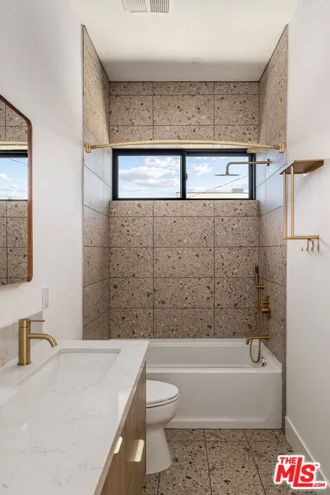 Gated and secure contemporary home in the heart of West Adams. Newly built modern, designed with an architectural flair and thoughtful functionality. Light-filled, open-concept living space with large picture windows, 10-foot ceilings and polished cement floors. The kitchen boasts ample cabinetry and brand-new stainless steel appliances, including refrigerator, gas range, microwave, and dishwasher. A private back patio surrounded by lush greenery, including a 90-year-old lemon tree, and half bath comprise the first floor. The oasis-like backyard also features banana, avocado, loquat, kumquat, and lime trees. Upstairs, natural light pours in through skylights, leading to three generously sized bedrooms, a laundry area with a stacked Samsung washer/ dryer, and a primary suite with a large closet, designer-tiled ensuite bath featuring gold hardware, and a private balcony with palm tree views. Prime Location for commuting, dining, and night life. Situated a short distance to LA’s Metro line with direct train rides to Santa Monica Beach, Downtown LA, and the K Line straight to LAX. Close to Highly Likely, Mizlala, Vicky’s All Day, Cento, Chulita, Johnny Pastrami, Tartine, Delicious Pizza, Alta and Whole Foods. With nearby access to Culver City’s shops, restaurants, and local parks like Kenneth Hahn and Baldwin Hills.