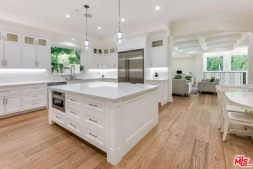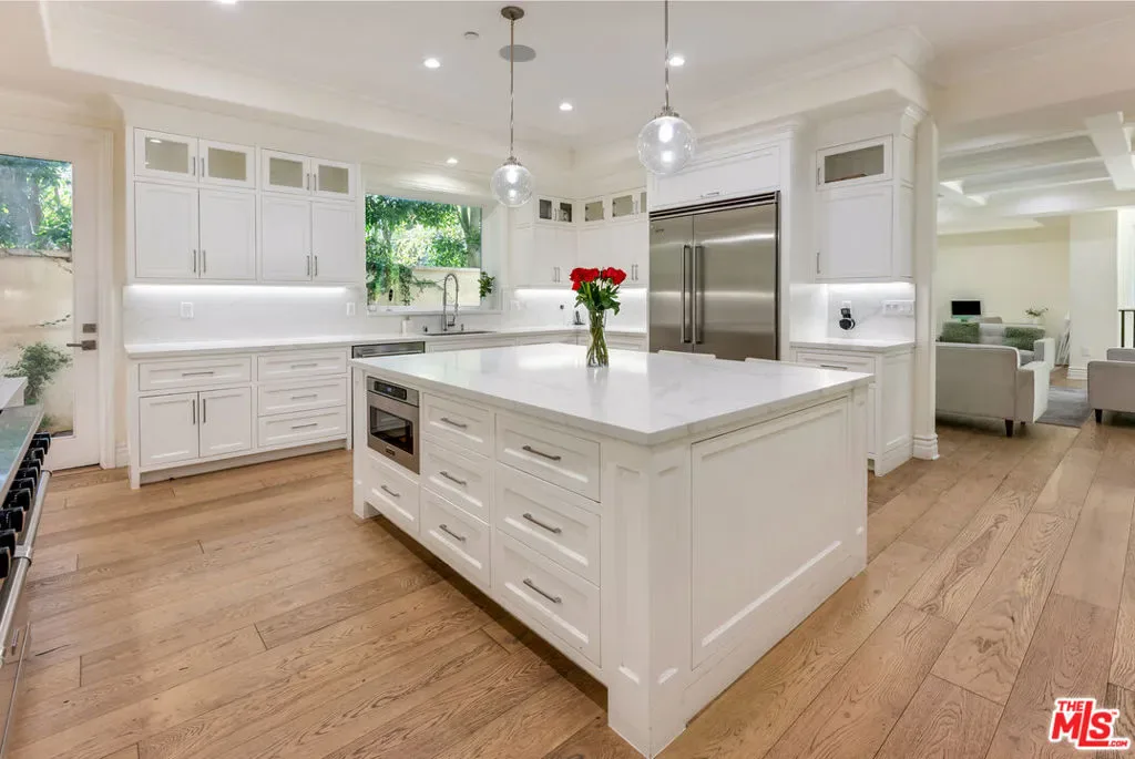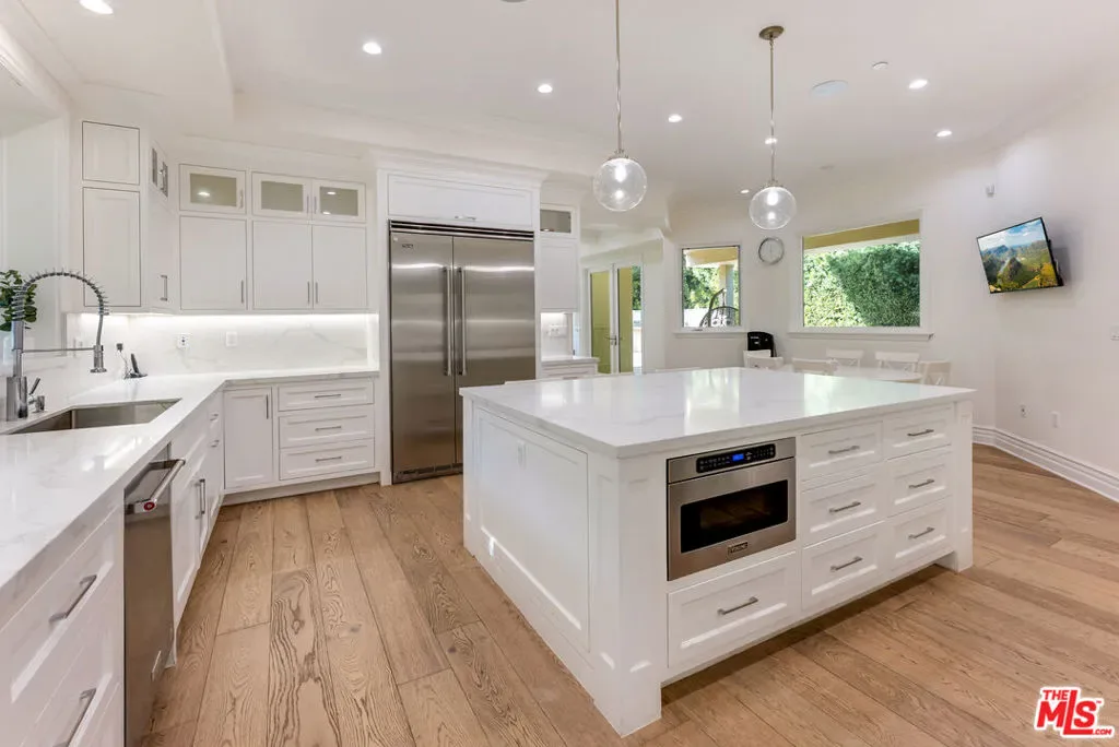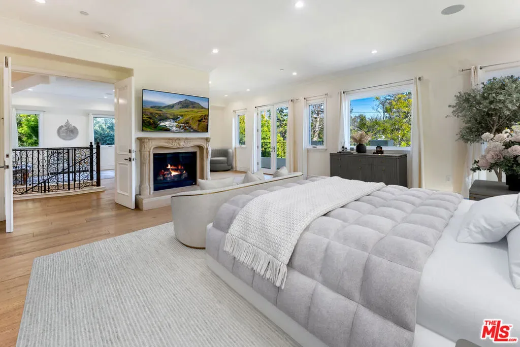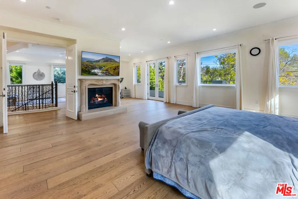 Wonderful newly build Mediterranean contemporary in Brentwood! Walk to the best cafes, restaurants. Many private schools and public schools are minutes away. Over 7000 sf, high ceilings, open floor plan beautiful white oak floors throughout. French doors open to back yard from the living room with fireplace and outdoor fire pit, built-in barbecue, and small separate office/flex room. Private and gated from the street. Truly an amazing kitchen with huge center island and separate full catering kitchen – perfect for entertaining. Kitchen is open to large family room and French doors to yard. The lower level is huge with high ceilings, family game room, gym potential great theatre and small maids and bath. Upper bedrooms is a landing area great for work space and 4 ensuite generous bedrooms. The primary is huge with a fireplace, stunning primary bath and custom built in closets. A wonderful home that’s beautifully done!