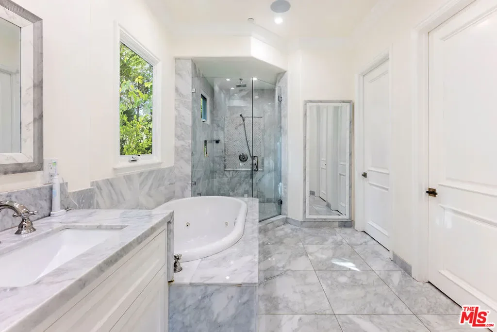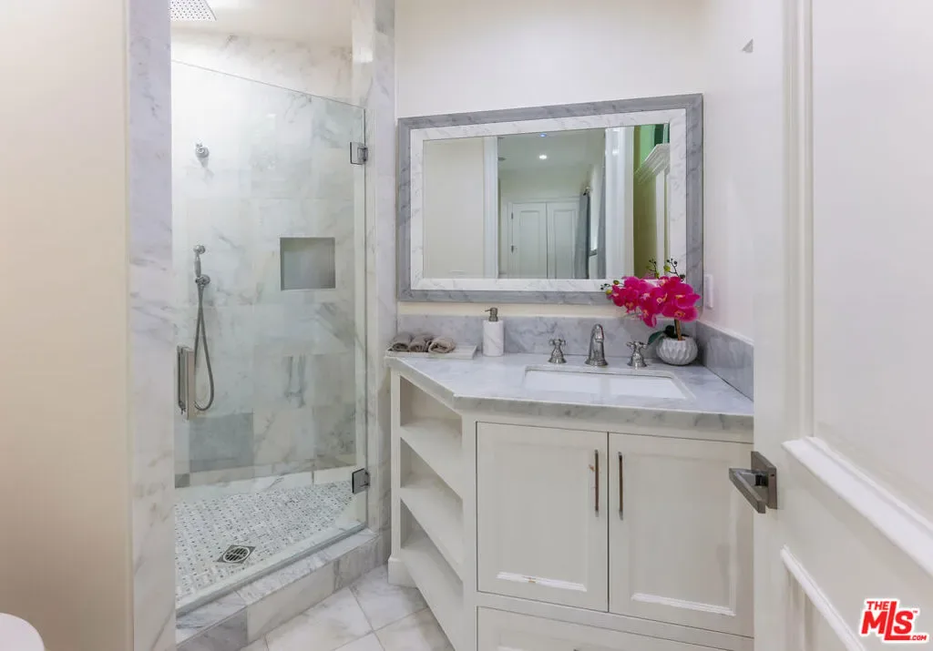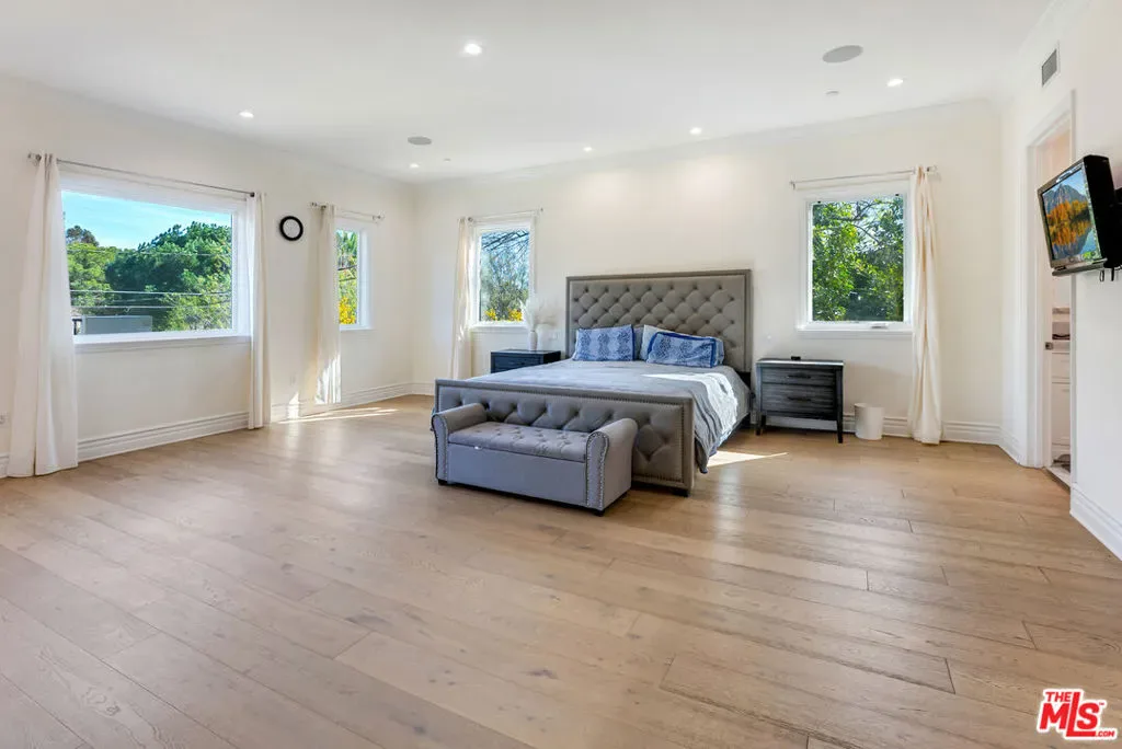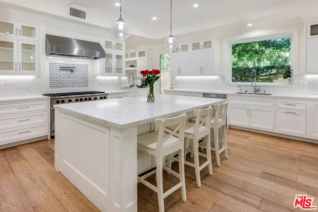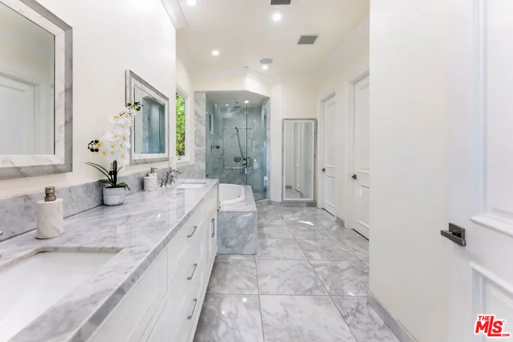 Wonderful newly build Mediterranean contemporary in Brentwood! Walk to the best cafes, restaurants. Many private schools and public schools are minutes away. Over 7000 sf, high ceilings, open floor plan beautiful white oak floors throughout. French doors open to back yard from the living room with fireplace and outdoor fire pit, built-in barbecue, and small separate office/flex room. Private and gated from the street. Truly an amazing kitchen with huge center island and separate full catering kitchen – perfect for entertaining. Kitchen is open to large family room and French doors to yard. The lower level is huge with high ceilings, family game room, gym potential great theatre and small maids and bath. Upper bedrooms is a landing area great for work space and 4 ensuite generous bedrooms. The primary is huge with a fireplace, stunning primary bath and custom built in closets. A wonderful home that’s beautifully done!