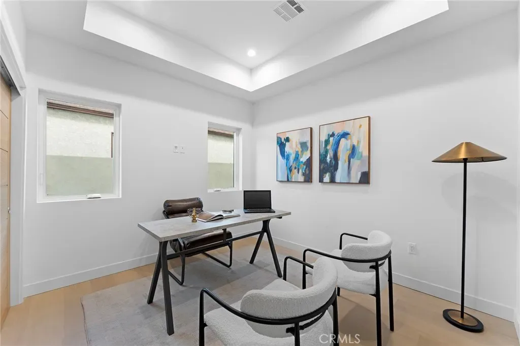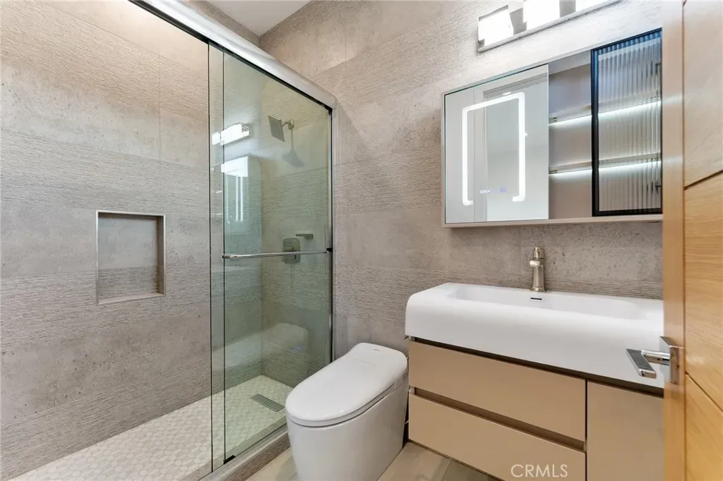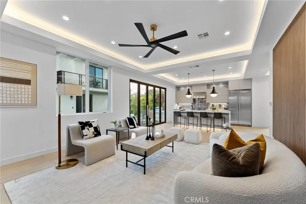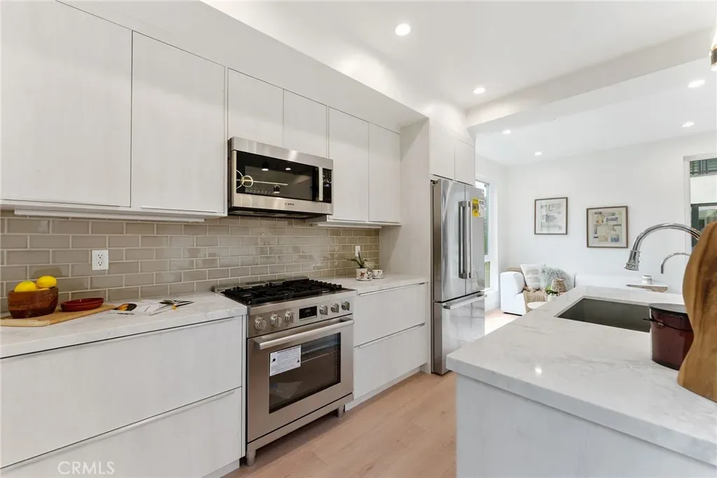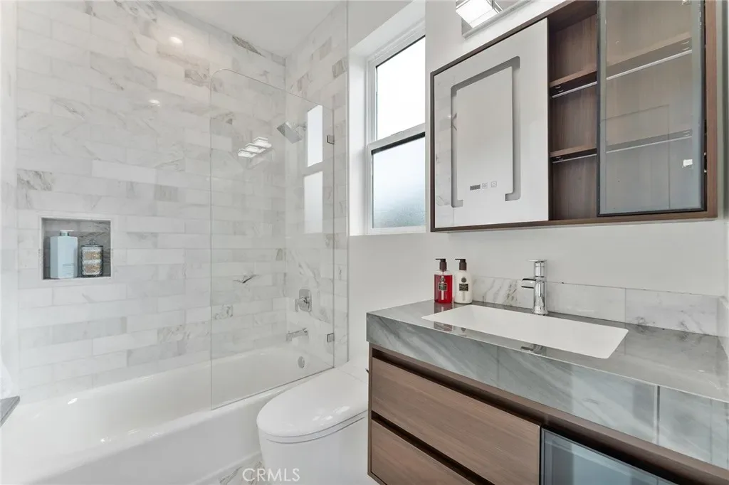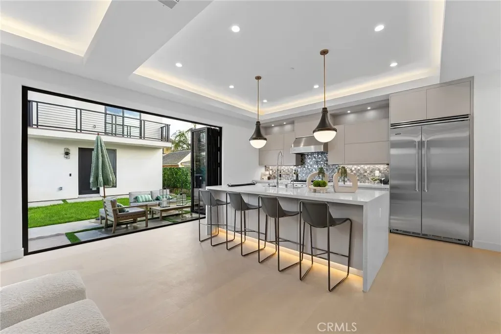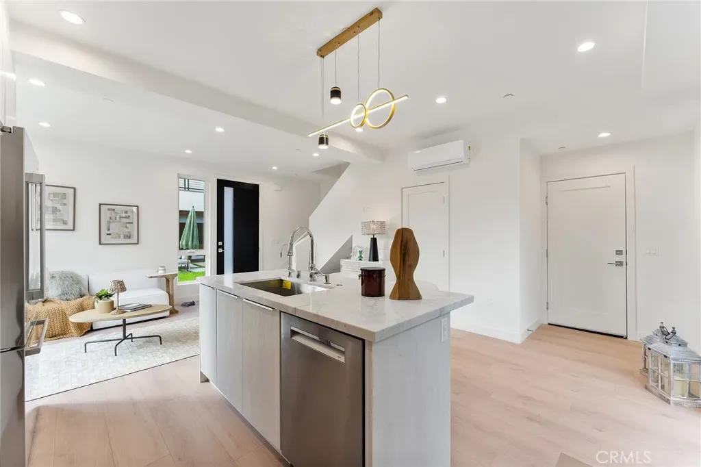 New House completed in February 2026. This new modern two-story residence located in a prime Mar Vista area delivers effortless luxury with an open-concept design and premium finishes throughout. Main house has 2193 SF of living space. Wide-plank hardwood floors flow across the dramatic living area anchored by a sleek linear fireplace, while the chef’s kitchen boasts professional-series appliances, a waterfall island. Entertaining extends seamlessly outdoors to a patio with built-in BBQ station. The main house offers four bedrooms and four baths, including a convenient first-floor guest suite and a serene upstairs primary retreat featuring a private balcony, walk-in closet, and separate shower with freestanding soaking tub. A separate two-story 995 SF ADU with its own entrance provides two bedrooms, 2.5 baths, and matching high-end finishes—perfect for family, guests, or rental income. Both the main home and ADU are powered by fully paid-off owned solar systems, with one shared water meter and individual gas and electric meters for easy management. Contemporary style, smart design, and sustainable living—all move-in ready.