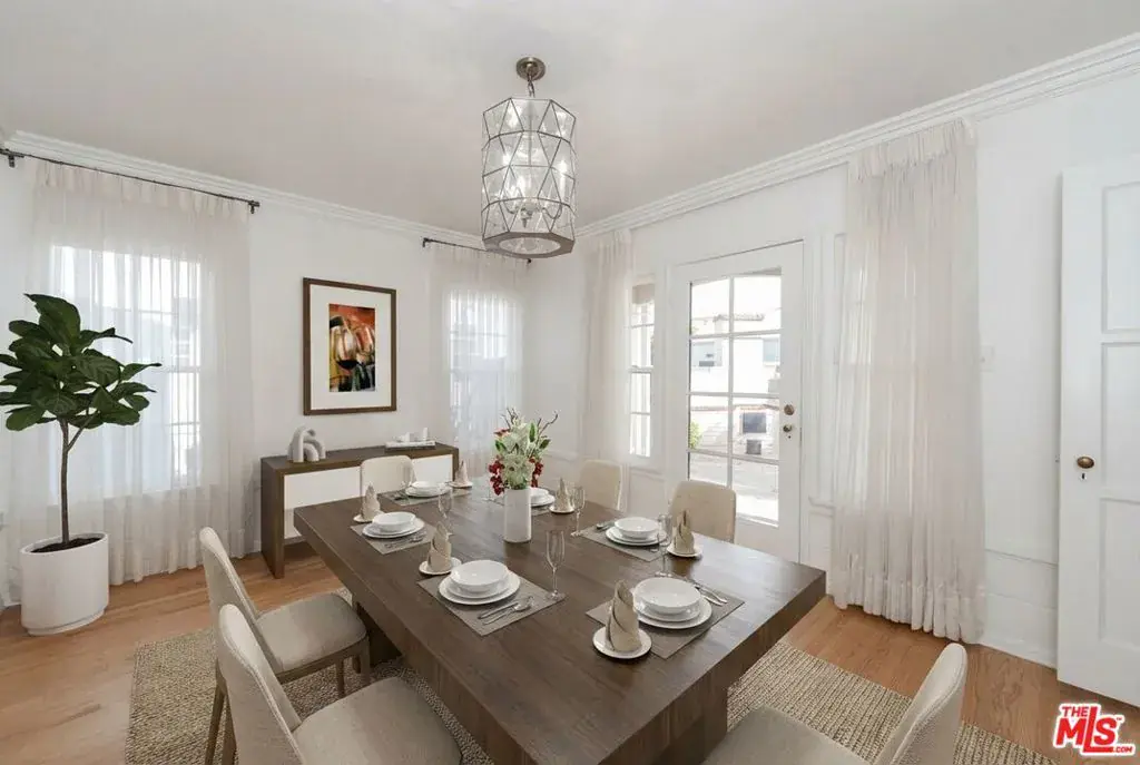 Welcome to this beautiful 2-story home nestled in the desirable neighborhood of Leimert Park. This 2,151 square foot home boasts 3 bedrooms, 3 bathrooms, and an office/library complete with built-in bookshelves, perfect for those working or studying from home. This home offers a perfect blend of charm and comfort. The step-down living room is spacious and features a stone fireplace and elegant crown moldings, creating a warm and inviting atmosphere. Step up to the formal dining room, adorned with a glass paned door, providing a seamless transition to the backyard patio, creating an ideal space for entertaining guests. The kitchen boasts a perfect blend of style and functionality. The white upper cabinets and dark gray lower cabinets create a modern and sleek look, complemented by the stainless-steel sink and appliances. With a double oven and recessed lights, this kitchen is perfect for hosting dinner parties or simply preparing a delicious meal. Off of the kitchen is a separate, quaint breakfast nook with shutters and insets providing a perfect spot for enjoying morning coffee or casual meals. Upstairs, you’ll find all the bedrooms, ensuring privacy and tranquility. The primary bedroom’s en-suite is open with a separate tub and shower. One of the bedrooms offers access to a rooftop deck, where you can relax and bask in the sun. This home features beautiful hardwood floors throughout, adding a touch of elegance to every room. The backyard patio is the complete with a brick pit, and is an ideal space for enjoying outdoor relaxation. The detached 2-car garage provides ample parking and additional storage. The washer and dryer are housed in a separate room off the garage. Situated on a tree-lined street, this home is conveniently located close to Culver City, LAX, Beverly Hills & USC. Metro rail transportation, offers easy access to Downtown Los Angeles, Santa Monica and to LAX. Don’t miss the opportunity to live in this Leimert Park gem. Come be the newest neighbor! (Some photos have been virtually staged)