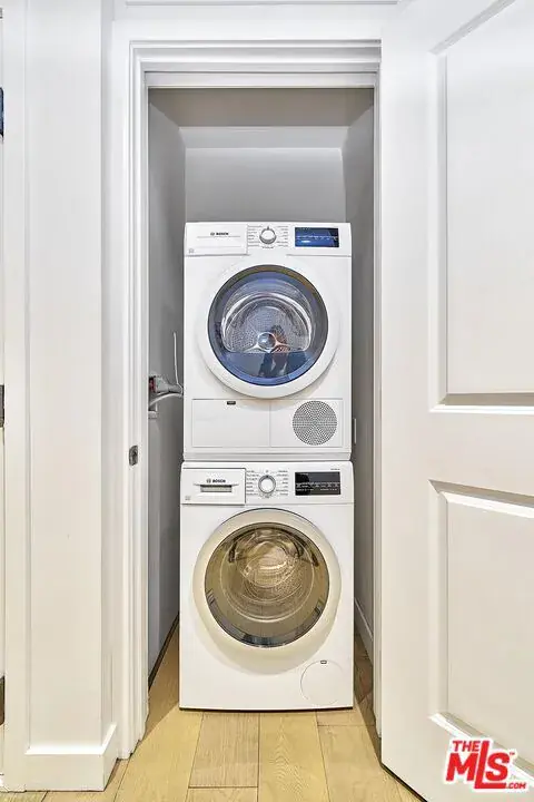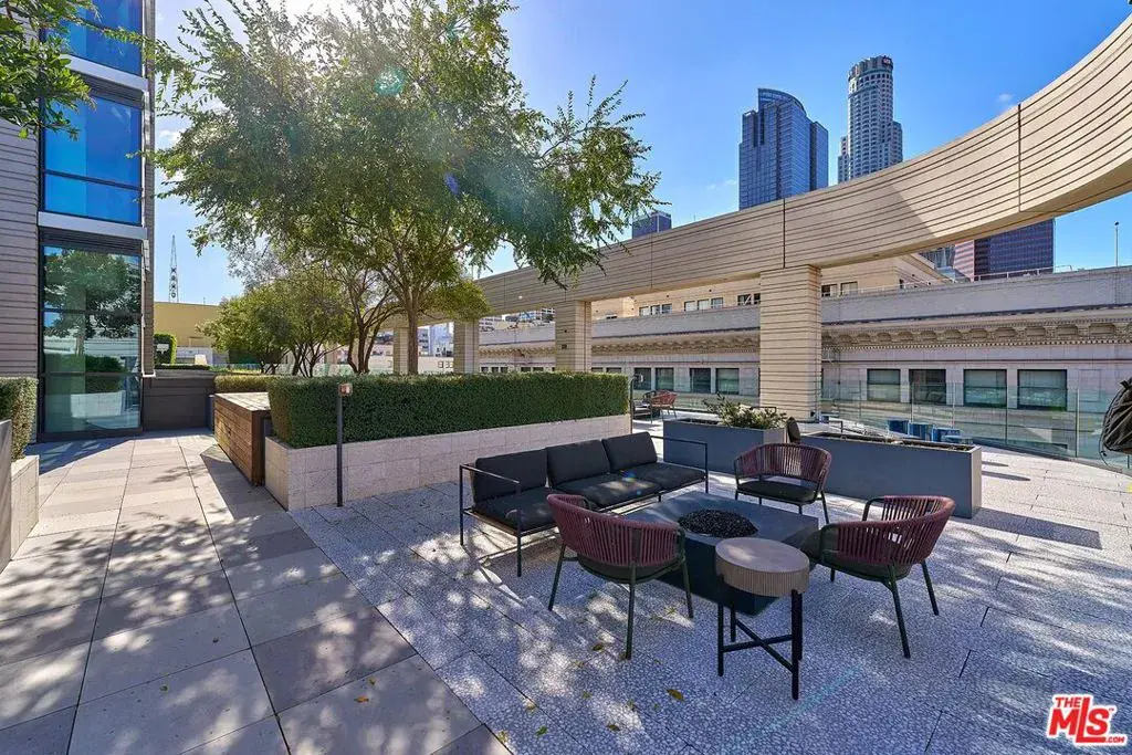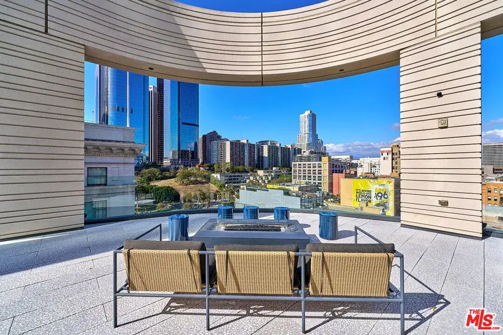Discover sophisticated downtown living at Perla, where this stylish 1-bedroom plus den, 2-bath residence spans 1,039 sq ft on the 8th floor. Expansive floor-to-ceiling windows flood the home with sunlight and showcase impressive cityscape views.The open-concept layout emphasizes comfort and flexibility the den easily converts into a home office or creative space. A modern kitchen offers sleek cabinetry, quartz countertops, and stainless-steel appliances (including a dishwasher, microwave, and disposal). In-unit laundry adds convenience to everyday life. Residents at Perla enjoy an exceptional amenity collection: 24-hour concierge and security, a state-of-the-art fitness center, pool, elevator access, and secure covered parking with one assigned space on Level B. The HOA dues are $941 per month. Set in the Historic Core/Broadway District, the location puts you moments from Grand Central Market, the Bradbury Building, MOCA, Walt Disney Concert Hall, and easy public transit. This residence offers a seamless blend of modern luxury and downtown energy the perfect retreat in the heart of Los Angeles.