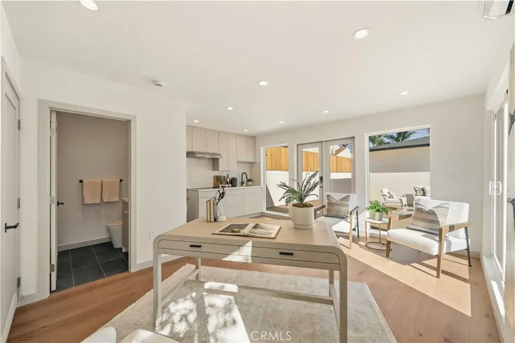 Quietly tucked behind a gated and fully fenced yard, this recently and thoughtfully reimagined Mar Vista / Del Rey home celebrates warmth, light, and natural beauty. The 1,294 sq ft main residence offers open-concept living with three bedrooms and two thoughtfully designed bathrooms, while the fully permitted ~320 sq ft ADU features a studio layout with a compact kitchen equipped with full appliances, a dedicated laundry area, and a private bathroom—ideal for guests, extended family, or a private creative retreat.
