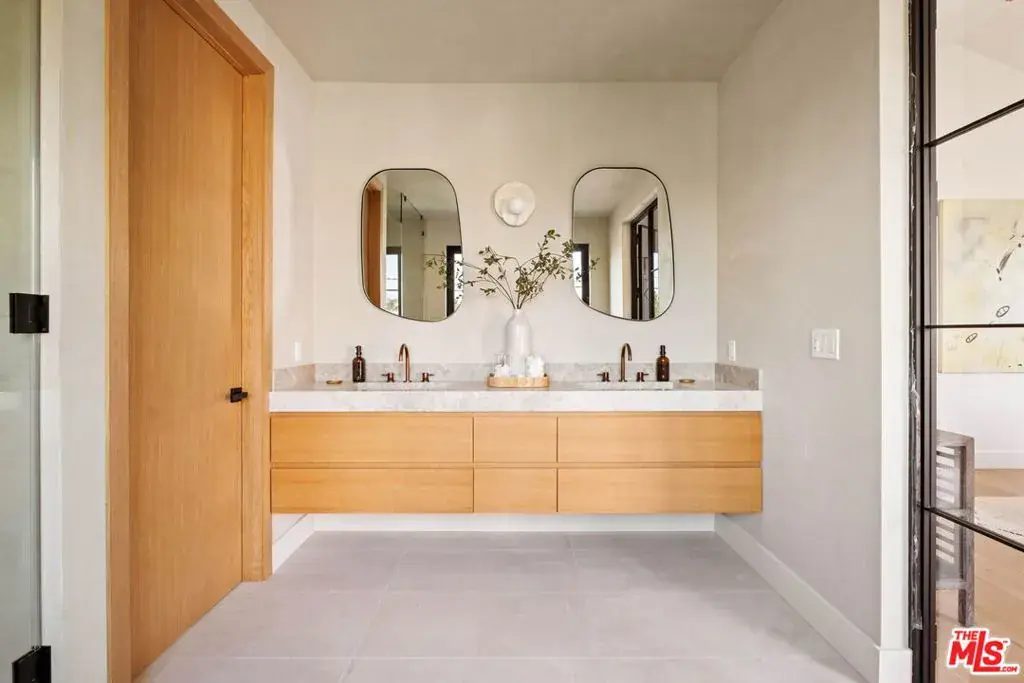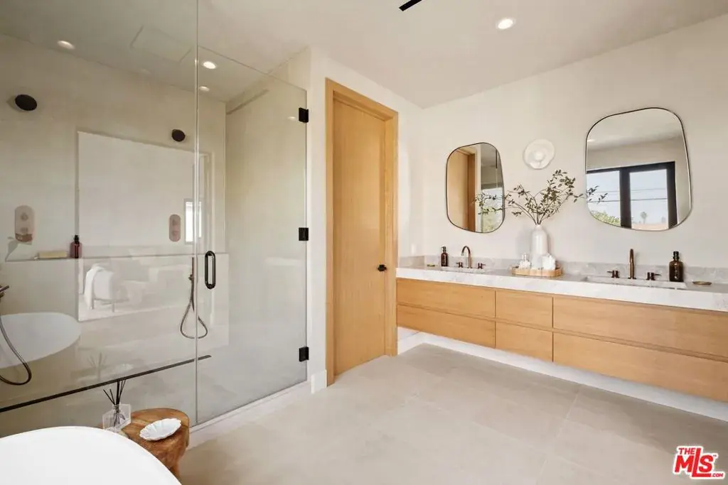 On a quiet street in a coveted Del Rey pocket, this impeccable Japandi inspired home by Jacobson Builders Group, effortlessly blends elevated design with modern functionality. Offering 4 bedrooms + office/flex space and 4.5 bathrooms, the custom home is crafted for both quiet daily living and sophisticated entertaining. The main floor features high ceilings, a sleek direct-vent fireplace, and expansive sliding doors that create seamless indoor-outdoor flow to the backyard with turf area. Flooded in natural light, the chef’s kitchen features Thermador appliances, a large walk-in pantry, Taj Mahal stone countertops, custom oak cabinetry, and designer lighting, anchoring the open living and dining areas. Rounding out the downstairs is a large bedroom with ensuite bathroom as well as another flex room that can serve as a bedroom, office or secondary living room with beverage fridge, vanity bar and French doors. Upstairs, the primary suite with vaulted ceilings, provides a private balcony, spa-inspired bathroom with a freestanding tub, dual showers, custom vanities, and a spacious walk-in closet. Two additional ensuite bedrooms feature custom finishes and refined bathroom details throughout. Additional highlights include triple-pane custom aluminum windows and sliders, an integrated speaker system, dual HVAC, wine room, large laundry room with custom cabinetry, wired security system and a two-car direct access garage with EV-ready plug-in. The fully gated exterior features drought-resistant landscaping and a blend of cement and cedar siding. Primely located in one of the most sought-after enclaves on the westside with central proximity to all the restaurants, shopping and entertainment in the Marina, Venice and Santa Monica areas, this new unique home is not to be missed.