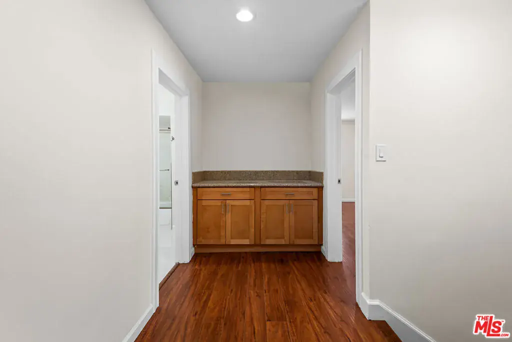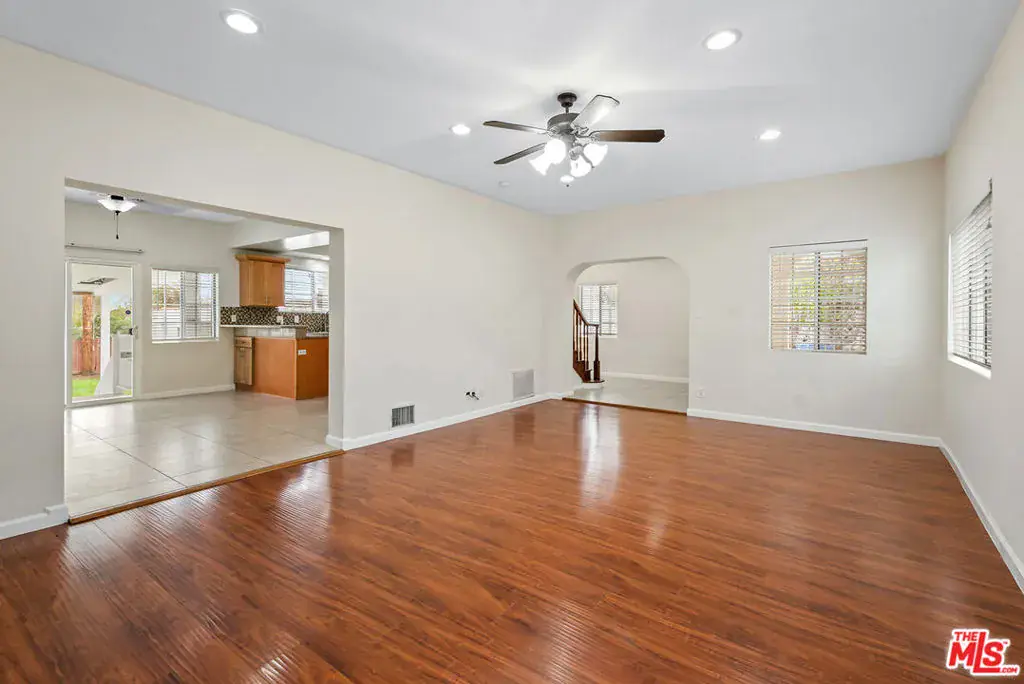 Ideally located near Larchmont Village, Hancock Park, and Koreatown, this beautifully updated Spanish-style home sits on a spacious lot in the historic Wilshire Park neighborhood. Featuring a gated driveway, the home welcomes you into a foyer with a grand wood staircase. The light-filled living room with fireplace and ceiling fan flows into a large dining room, which opens to a modern kitchen with granite counters and new stainless steel appliances. Sliding doors lead to a covered patio and convenient laundry room with washer and dryer. A small bedroom and bathroom off the kitchen make for a perfect office or guest room. Upstairs, there are two spacious bedrooms with walk-in closets, a stylish bathroom, and a generous primary suite with an en-suite shower. The detached garage and long driveway offer ample parking and storage. With a great walk score and easy freeway access, this home combines comfort, style, and convenience.