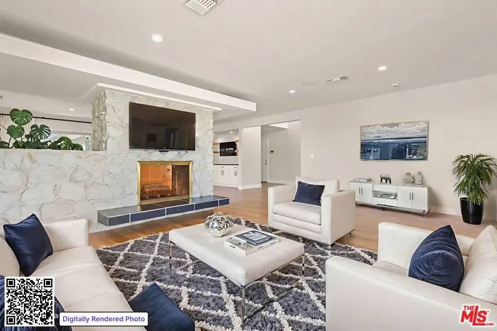 Step inside this iconic Mid-Century modern gem in the coveted Baldwin Vista neighborhood, where timeless architectural charm meets stunning, panoramic views of the DTLA skyline. The home has been meticulously updated with modern amenities, while preserving its signature mid-century character. The expansive great room, with its soaring ceilings and striking double-sided stone fireplace, sets the tone, effortlessly blending with the sleek, wide-plank white oak floors and updated recessed lighting. Floor-to-ceiling picture windows flood the space with natural light, enhancing the open, airy atmosphere. Perfect for entertaining, the great room flows into a spacious dining area, framed by elegant plantation shutters. The state-of-the-art kitchen, complete with Quartz countertops and high-end stainless-steel appliances is a home chef’s dream, with an adjacent breakfast nook for casual dining. A well-appointed laundry room with washer, dryer, and sink completes the functional layout. Down the hallway, you’ll find a stylish powder room with a modern touch, and two generous guest bedrooms featuring classic shuttered windows. These rooms share a spa-like Jack and Jill bathroom, where an oval soaking tub takes center stage, complemented by a separate shower with pebble floors, double sinks with Corian countertops, and chic bronze fixtures. The hallway’s display-worthy storage area enhances the home’s aesthetic, perfect for showcasing art or treasured heirlooms. The large primary bedroom is a sanctuary, offering three closets and ample space for a sitting area or home office. Its luxurious en-suite bathroom is a private retreat, featuring a spacious walk-in shower, double sinks, a heated towel rack, and direct access to the backyard. Outdoors, the backyard exudes classic mid-century tranquility with its orange trees, lush greenery, and a patio equipped for relaxing or entertaining, all while enjoying sweeping views of Los Angeles. Located centrally with easy access to DTLA, LAX, Inglewood, and Culver City, this home offers the best of mid-century modern living in the heart of the city. Don’t miss this opportunity!