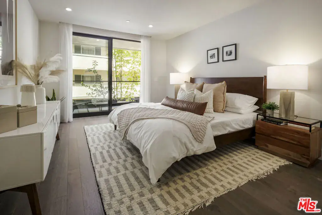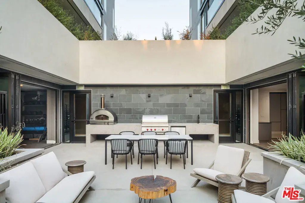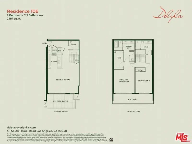 Welcome to Delyla, elevated living in Beverly Grove, just moments from premier dining and shopping on Robertson Blvd. Townhome 106 offers spacious dual-level living with 2-bedrooms, 2.5-bathrooms, and 2,187 SF of interior space, plus 490 SF of private outdoor space across a patio and balcony. Enjoy the convenience of 2 side-by-side assigned parking spaces in the secure subterranean garage. The open-concept main level features an expansive living area, gourmet kitchen, and a spacious private patio, perfect for indoor-outdoor entertaining. Upstairs, both bedrooms offer access to a large balcony. High-end finishes include Sub-Zero and Wolf appliances, Caesarstone polished quartz countertops, and Italian Gessi fixtures throughout. Spa-inspired bathrooms boast Statuario Maximus Caesarstone, Carrara Onyx tile, Duravit sinks, and anti-fog mirrors. Additional highlights include LED recessed lighting and sleek porcelain flooring throughout. Delyla offers premium amenities such as concierge service, controlled access, a community lounge, fitness center, and an outdoor lounge with pizza oven. Only two residences remain.
