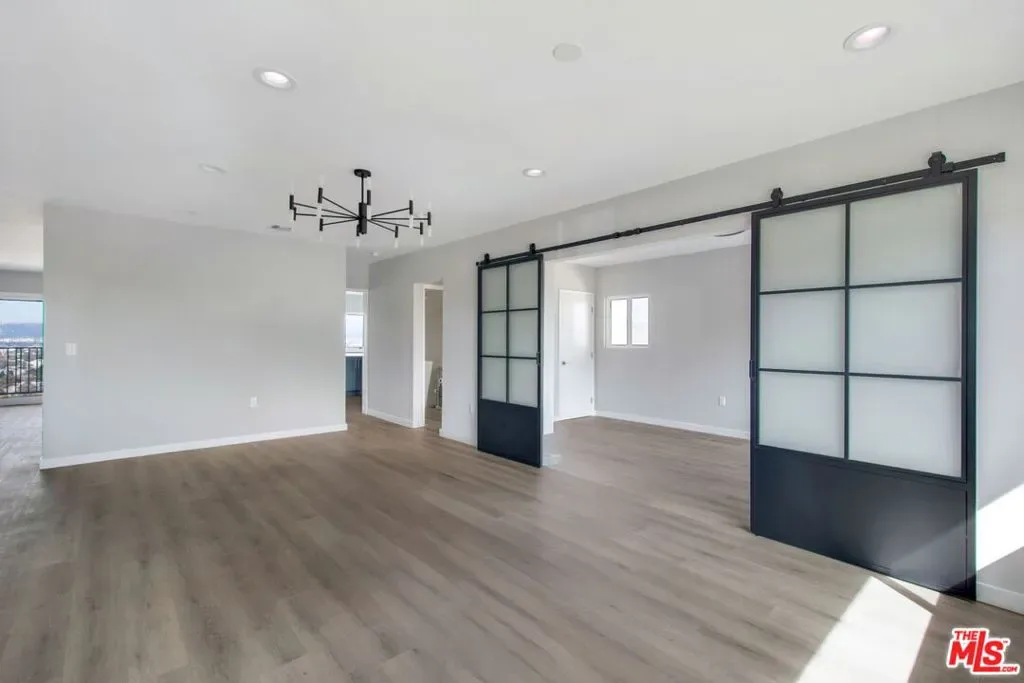 Experience rare elegance and versatility in this extraordinary hillside residence, offering breathtaking panoramic views from downtown to the Hollywood Hills. Fully remodeled with refined design and superior functionality, the home features seven bedrooms, six baths, and two complete kitchens across two spacious levels each with the flexibility to function as a full residence or connected retreat. The main level showcases a light-filled living room with sweeping city views, a formal dining room, and a gourmet kitchen with an eight-foot dining island, custom cabinetry, and top-tier stainless-steel appliances. Downstairs, a second great room with its own kitchen and laundry area provides exceptional adaptability for multi-generational living, creative pursuits, or home office configurations. Enjoy indoor-outdoor living at its best with a large, paved terrace overlooking a sparkling pool and expansive deck perfect for entertaining or quiet relaxation. Several bedrooms offer convertible potential for offices, studios, or wellness spaces. Virtually staged for inspiration; offered unfurnished. Written lease criteria include verification of income, credit, and references. No short-term rentals permitted. Contact the listing agent for details.