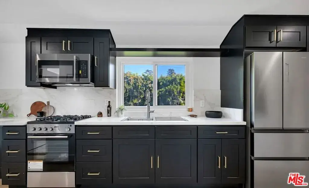 This modern home in Brentwood features dual gated access, including a private entrance to a detached RARE ADU/guest house, along with a spacious, beautifully landscaped grassy yard. Set in a desirable neighborhood north of Sunset Boulevard and just minutes from the Brentwood Country Mart, the home was thoughtfully renovated in 2024.Designed for seamless entertaining, the residence highlights refined lines and a contemporary aesthetic throughout. The main home offers a single level home of three en-suite bedrooms plus a dedicated office or optional fourth bedroom. The stylish kitchen is equipped with high-end Thermador appliances, generous cabinetry, and an adjacent laundry room.The separate guest house provides exceptional flexibility with its own entrance, bedroom, bathroom, kitchen, den, and laundry area ideal for visitors or a private workspace. Outdoors, the expansive backyard invites both relaxation and gathering, featuring a large lawn with REAL GRASS. A raised hot tub, and a welcoming courtyard with ample seating, and a fire pit for evenings by the fire. A two-car garage offers abundant storage and includes a universal EV charger. Blending sustainability with elevated living, this exceptional property is located in one of Brentwood’s most coveted areas, offering a harmonious mix of modern architecture and lush, green surroundings that frame the home on every side.