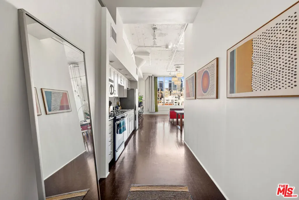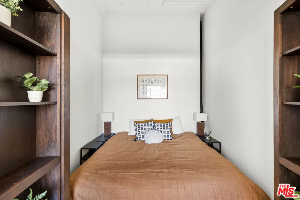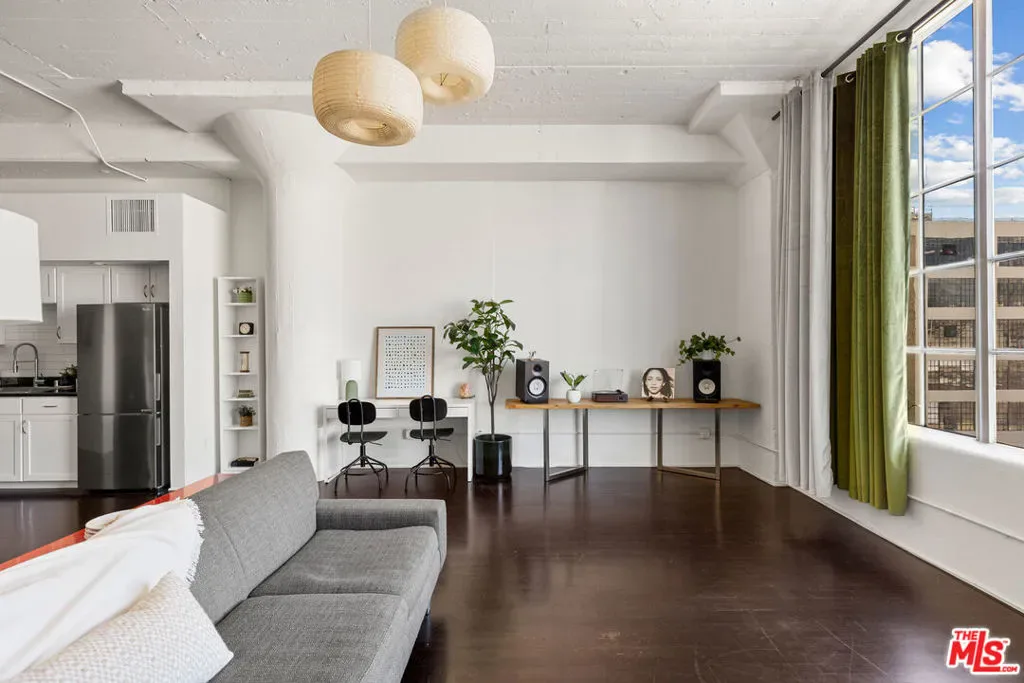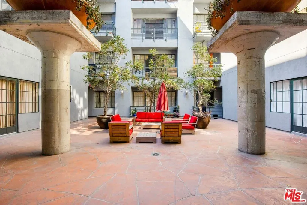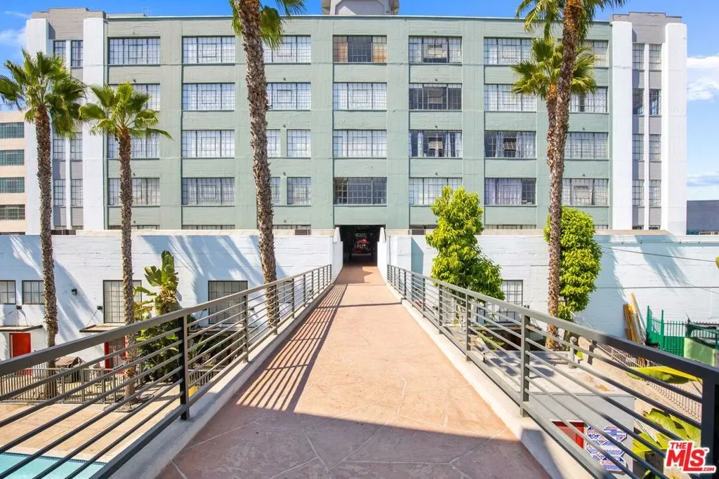 Welcome to a New York-style loft in Downtown LA. The 2-bedroom loft is in a Landmark building. Unique to the Little Tokyo Lofts, the bedrooms are enclosed. The loft features architectural elements such as a semi-open floor plan with an original oversized steel casement window facing West. The window renders a stunning WOW-view of the Downtown L.A. skyline. The loft is a quiet and peaceful retreat from the hustle and bustle of the city. Watch the sunset from the comfort of your living room, kitchen or bedroom. Step into tall gallery walls, hardwood floors, 12 ft. ceilings, exposed beams and original columns. Natural light emanates throughout. One bedroom is enclosed with custom hidden doors disguised as a bookcase. The secret duo-doors add style and function as they open wide blending seamlessly into the semi-open floor plan. The kitchen is fully equipped with stainless steel appliances. The bathroom features a large soaking tub and washer & dryer. Bonus feature: 2 parking spaces on title. In addition, rare for Downtown L.A., there are 25 guest parking spaces on-site. Centrally located and walkable to any neighborhood in DTLA. Building amenities include 24/7 security, an open-air lounge patio, a heated pool and hot tub, barbecue area, fitness room and dog run. Adjacent to Little Tokyo – which is now 1-of-3 remaining historic Japantowns left in the nation. Bordered by the Arts District, an eclectic neighborhood with a diverse range of Michelin star restaurants, concept coffee shops, breweries and world class museums. Exploring the city is easy with a Metro Bike Share Station outside the buildings front doors. Near public transportation and easy access to freeways. The Little Tokyo Lofts is a six-story condominium building. The building stands as a testament to the industrial history of Downtown Los Angeles. Originally constructed in 1922 as the Westinghouse Electric Company, the trademark historic Art Deco building was transformed into residential lofts in 2006, offering a blend of historic charm and modern living.