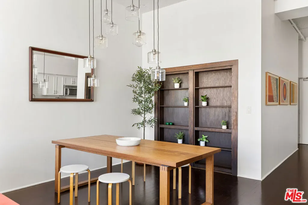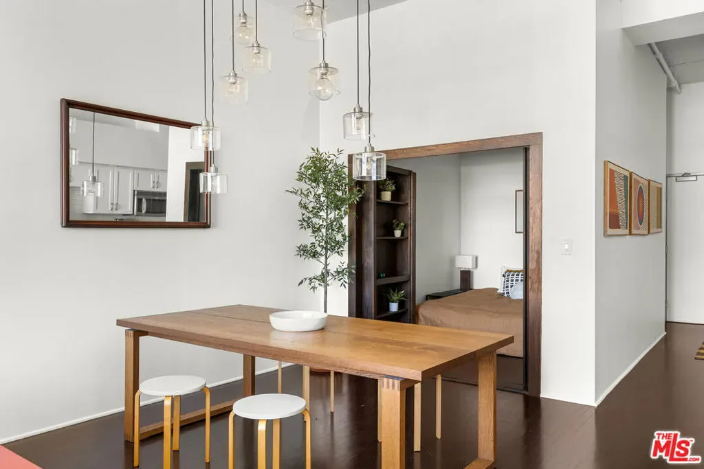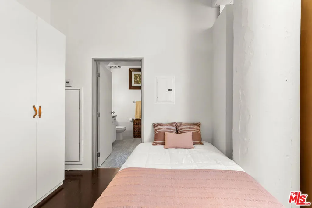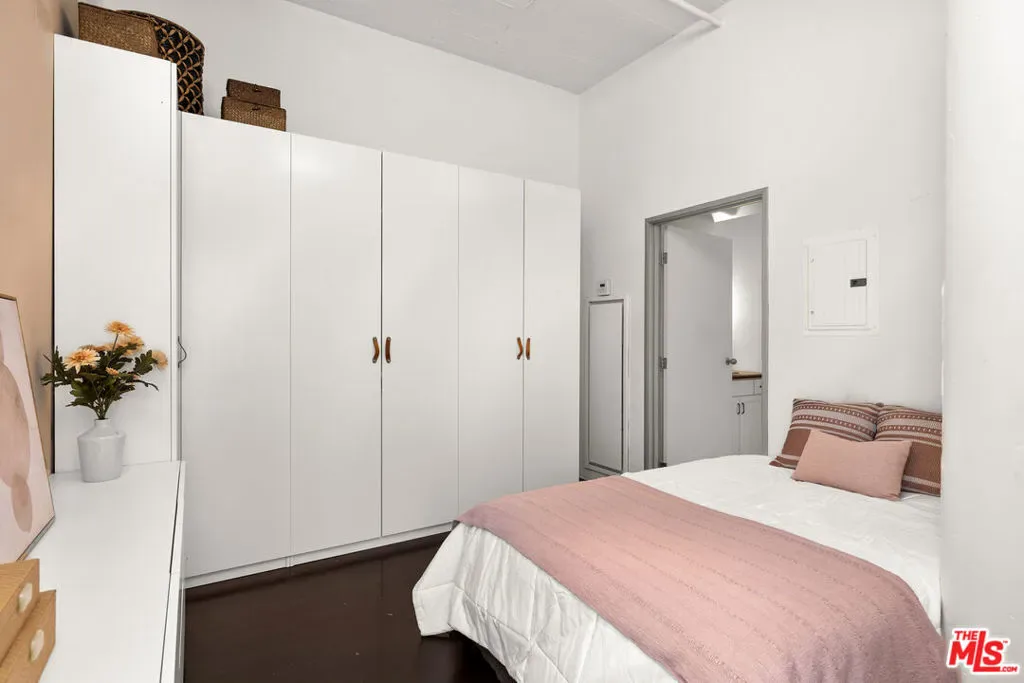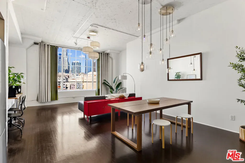 Welcome to a New York-style loft in Downtown LA. The 2-bedroom loft is in a Landmark building. Unique to the Little Tokyo Lofts, the bedrooms are enclosed. The loft features architectural elements such as a semi-open floor plan with an original oversized steel casement window facing West. The window renders a stunning WOW-view of the Downtown L.A. skyline. The loft is a quiet and peaceful retreat from the hustle and bustle of the city. Watch the sunset from the comfort of your living room, kitchen or bedroom. Step into tall gallery walls, hardwood floors, 12 ft. ceilings, exposed beams and original columns. Natural light emanates throughout. One bedroom is enclosed with custom hidden doors disguised as a bookcase. The secret duo-doors add style and function as they open wide blending seamlessly into the semi-open floor plan. The kitchen is fully equipped with stainless steel appliances. The bathroom features a large soaking tub and washer & dryer. Bonus feature: 2 parking spaces on title. In addition, rare for Downtown L.A., there are 25 guest parking spaces on-site. Centrally located and walkable to any neighborhood in DTLA. Building amenities include 24/7 security, an open-air lounge patio, a heated pool and hot tub, barbecue area, fitness room and dog run. Adjacent to Little Tokyo – which is now 1-of-3 remaining historic Japantowns left in the nation. Bordered by the Arts District, an eclectic neighborhood with a diverse range of Michelin star restaurants, concept coffee shops, breweries and world class museums. Exploring the city is easy with a Metro Bike Share Station outside the buildings front doors. Near public transportation and easy access to freeways. The Little Tokyo Lofts is a six-story condominium building. The building stands as a testament to the industrial history of Downtown Los Angeles. Originally constructed in 1922 as the Westinghouse Electric Company, the trademark historic Art Deco building was transformed into residential lofts in 2006, offering a blend of historic charm and modern living.