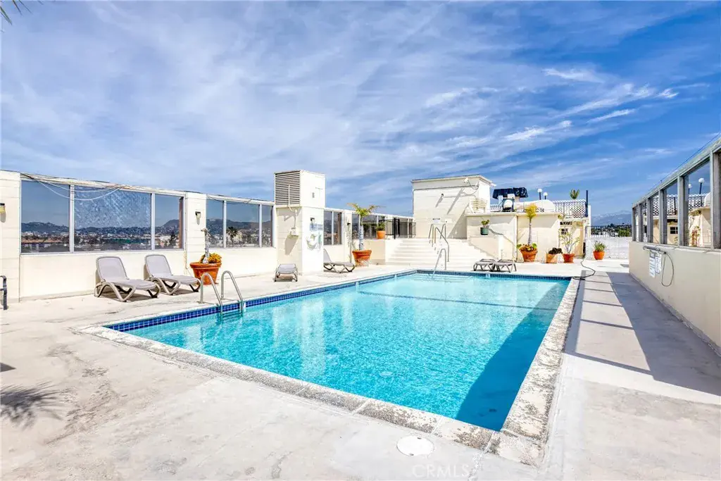 Top-floor premium unit with no facing neighbors, offering privacy and elevated views. This beautifully updated 1-bedroom, 1-bath residence near DTLA is within walking distance to Lafayette Park and features a spacious, open-concept floor plan. The home was refreshed in 2024 with new flooring in the living room and bathroom, along with fresh interior paint. Enjoy a bright living and dining area that opens to a private balcony with views of the Hollywood Hills. The open kitchen flows seamlessly into the main living space, perfect for both everyday living and entertaining. Additional highlights include central air conditioning and ample natural light. HOA dues include water, gas, trash, 24-hour security, and an on-site property manager. The unit comes with one gated, assigned parking space. Residents have access to amenities, including an expansive rooftop deck, swimming pool, spa, sauna, BBQ area, and a spacious fitness center. An excellent opportunity to own a move-in-ready home in a prime Los Angeles location.