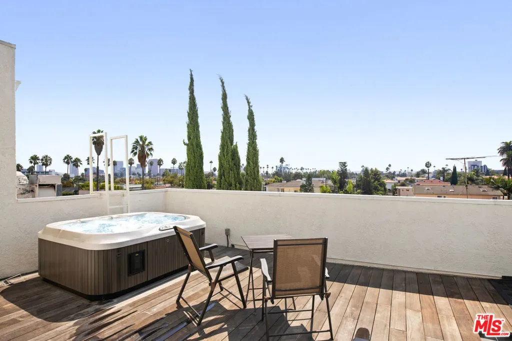 Bathed in natural light and thoughtfully designed across two levels, this stunning one-bedroom plus loft, two-bathroom penthouse offers the perfect blend of comfort and sophistication. The airy main floor welcomes you with generous windows that fill the space with warmth, highlighting an open-concept layout ideal for both relaxing and entertaining. The lofted second story provides a flexible bonus area – perfect for a home office, creative space, or guest nook – overlooking the bright living area below. The serene primary suite features ample closet space and its own private bath, creating a peaceful retreat. A rare bonus of this home is the private rooftop outdoor area, ideal for lounging, unwinding, and taking in beautiful sunset views. Situated in a charming neighborhood just moments from Cedars-Sinai and the best of Beverly Grove, this top-floor residence offers the convenience of city living in a peaceful, welcoming setting. With two stories of modern comfort in a prime location, this penthouse is a rare find that captures the very best of Los Angeles living.