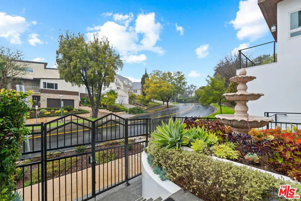 Phenomenal newly remodeled and expanded in 2019 Contemporary 4 bed/4.5 bath complete with elevator! This prime Westwood Hills property was taken completely down to the studs to create a stunning home with all bedrooms with ensuite bathrooms and newer high-end finishes throughout. Set privately off the street on a large 8,300+sf lot with incredible curb appeal and panoramic tree top views from every room. Soaring high ceiling formal entry invites you into the home filled with natural light and ideal indoor/outdoor flow with multiple French doors and sliders to balconies and outdoor areas. Spacious living room with linear fireplace and sliding doors to balcony opens to dining room with access to a year-round entertainer’s backyard with tiled patio including wood deck and cover with lighting and privately landscaped planters, barbecue area and side yard hot tub. Dream chef’s kitchen with center island, all Viking stainless steel appliances including 6-burner range and double ovens, granite countertops and inviting breakfast room. Comfortable family room off kitchen with fireplace and French doors to backyard. 3 bedrooms on main level including primary suite with 2 custom built walk-in closets, access to backyard and luxurious custom finished primary bathroom with separate bath and shower and dual basins. Lower level 4th bedroom with ensuite bathroom, office area and full laundry room with storage. Additional features include hardwood flooring, dual zone ac/heat, fully wired with ethernet and coaxial, LED recessed lighting throughout, all custom finished bathrooms with rain shower heads, gated front entrance, direct access 2-car garage with modern glass garage door and contemporary steel railings on all balconies. Close proximity to UCLA, Westwood Village, Century City, Brentwood Village and San Vicente Blvd. retail and restaurants. Meticulously maintained and move-in ready! Warner Avenue Elementary School.
