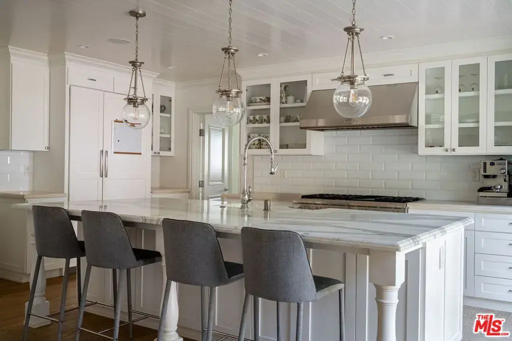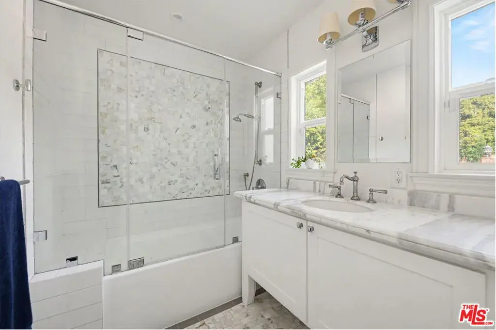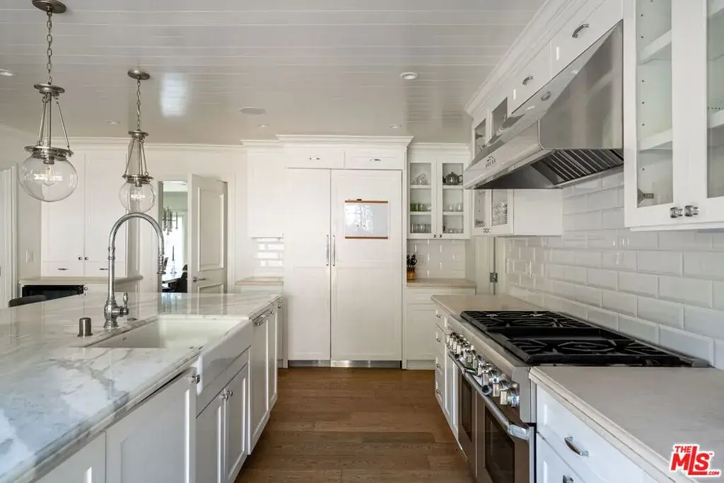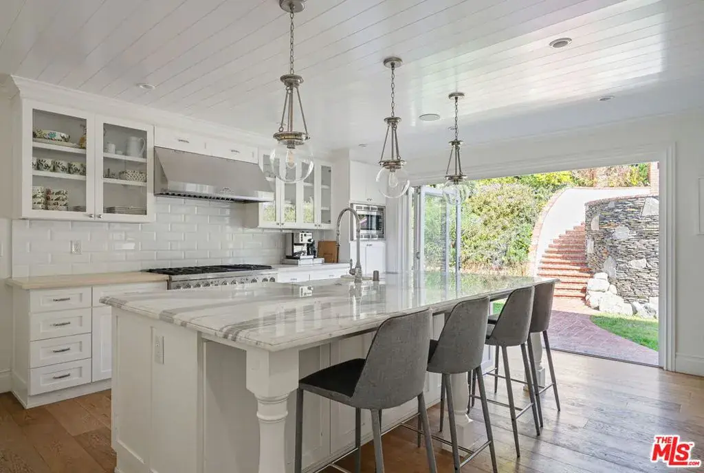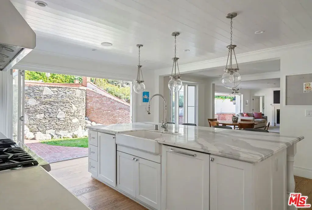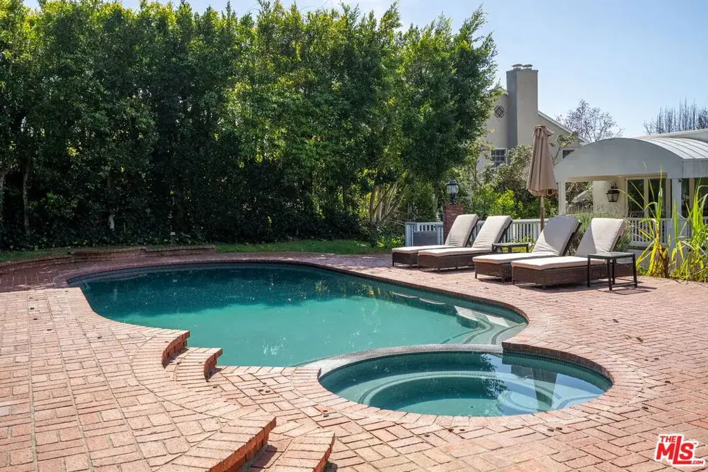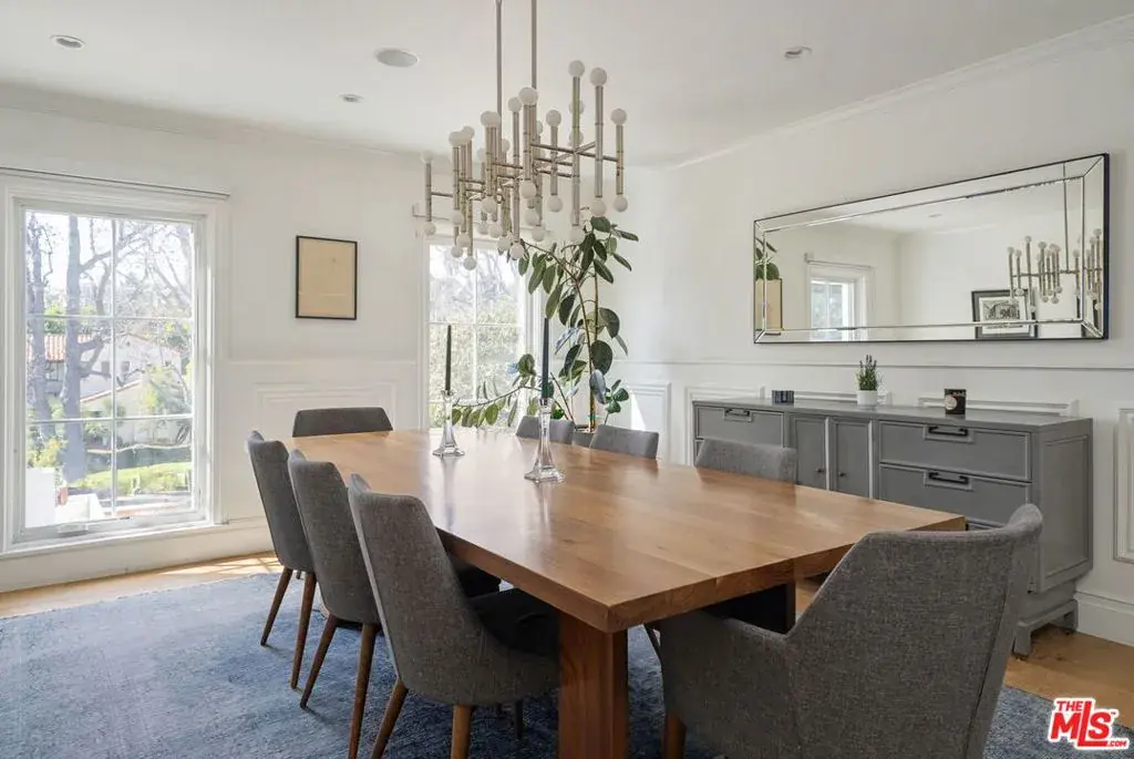 Prime Little Holmby at its finest! The coveted 400 block of prestigious Loring Avenue is home to this majestically sited Traditional residence. Although originally built in 1940, it has been recently remodeled in a universally appealing style and the floorplan modified to live like now-and-today with easy movement from room to room and to the glorious outdoors. Original period details remain intact and gleaming while stunning newer finishes create a fresh, current feel throughout. Large picture windows capture neighborhood vistas. Higher ceilings create airiness and volume. Light-hued, wide-planked wood flooring and banks of tall glass doors are but a few of the many highlights this residence offers. The foyer has as its centerpiece a graceful, sweeping staircase. The formal living and dining rooms off either side of the entry are both light-filled and spacious and enjoy street-side treetop vistas across this fine neighborhood. The cheerful kitchen/great room is the absolute quintessential; set at the back of the house with easy access to the backyard, this beautiful, gourmet cook’s kitchen features Carrara marble counters and all the culinary bells and whistles, a huge center island and adjoining pantry, an informal dining area and a vast family room area. Completing the downstairs are a home-office, two ensuite bedrooms, perfect for guests, playrooms, housekeepers or nannies, and a large laundry/mud room. From here there is direct access into the garage. The upstairs features a lovely primary suite with its sumptuous, spa-like bath featuring a soaking tub, a huge shower and dual vanities and a terrific closet and many built-ins. Off the primary is an outdoor sitting area with an adjoining bridge leading to the pool and spa. The three additional upstairs family bedrooms are all ensuite and all have walk-in closets and lovely marble-tiled baths. Completing the upstairs is a second laundry room. The lower level is host to an enormous media room complete with an adjacent wine room and tons of extra storage. The private backyard is a gigantic playground of al fresco entertaining space replete with a brick patio, a built-in BBQ, a cascading waterfall feature, ample grassy areas, a fire-pit lounge area, a sparkling swimmer’s pool and spa and multiple lounging areas; it’s the perfect spot within which to enjoy the Southern California lifestyle, relaxing and dining under its sun and stars. Inclusion in the Warner Avenue Elementary School district is a very important feature here as well. Located close to UCLA, Holmby Park and Westwood Village and is a short drive to all that Beverly Hills, Brentwood and the Century City Mall have to offer.