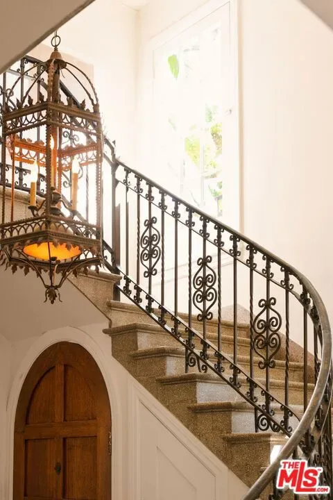 Located on one of Hancock Park’s most prestigious blocks, 441 S Muirfield Rd offers a rare invitation to join a storied lineage of neighbors, from Howard Hughes and Buster Keaton to Shonda Rhimes and Antonio Banderas. The Mediterranean Revival estate captures a vibe that is truly “Unforgettable” – a nod to the history found just two doors down at the former Nat King Cole estate. You are greeted by a dramatic foyer and grand-scale entertaining rooms that possess the kind of original character modern builds simply cannot replicate. The home features four oversized bedrooms upstairs and a fifth on the main level, complemented by a basement perfectly suited for a private wine cellar. Outside, the expansive 18,541-square-foot lot serves as a private sanctuary, reminiscent of a coastal European villa featuring a classic pool and sports court tailored for a premier lifestyle. A significant value-add is the permitted, two-story guest house and garage, providing the ultimate footprint for guest suites, a professional music studio, high-end gym, or sophisticated home office. With its historic charm and unmatched pedigree, this is a once-in-a-generation opportunity to curate your future in the company of legends.