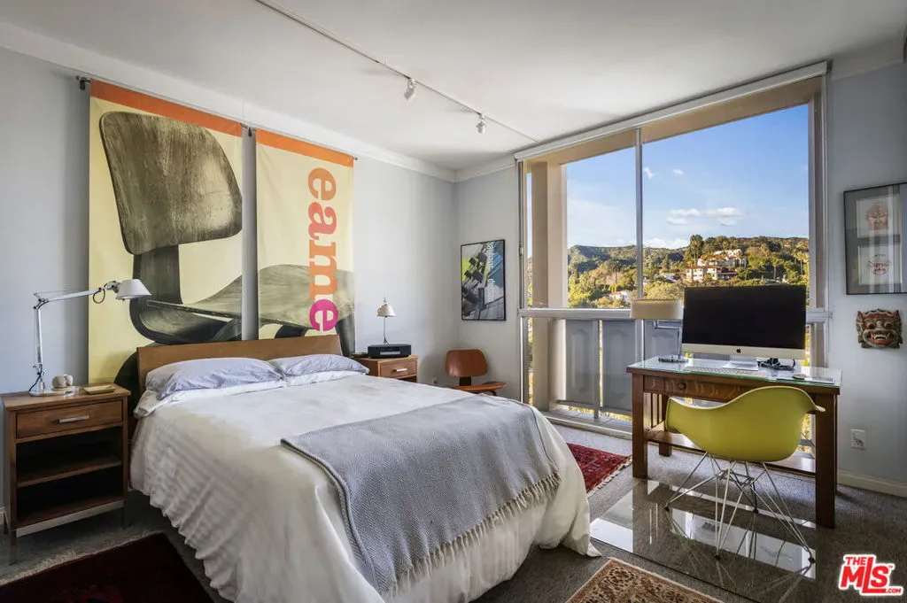 SATISFACTION despite what Mick Jagger insists comes in every shape and form. A full Thanksgiving belly is SATISFYING. Smacking the snooze button on a rainy Sunday deeply SATISFYING. Imagine how SATISFYING it would be to lose enough weight and comfortably fit into favorite high school blue jeans. Watching two baby hummingbirds practice take-off drills on your patio? Mesmerizingly SATISFYING. Step into this delightful 1BR/1BA home in Los Feliz’s prized Mid-Century tower and feel that same elusive sweet-spot of eleventh-floor magic – an instant, involuntary “ahh, this is seriously SATISFYING.” The bright, modern kitchen with stainless appliances + bonus wine cooler? Tastefully SATISFYING. Open living/family room with defined dining area, floor-to-ceiling sliders, bright natural light, oversized mirrors, track lighting + comfy home theater w built-in speakers’ nook? Homebody SATISFYING. A bathroom that features sparkling glass shower, full tub, and toasty heated toilet? Warmly SATISFYING! Designer California Closets beautifully maximizing storage, plus outdoor space overlooking hypnotic hillsides and The Observatory? Cosmically SATISFYING. 24 hour doorman, security, pool, gym, and garage parking if SATISFACTION had an address, this would be it. [*written by a living, breathing human]